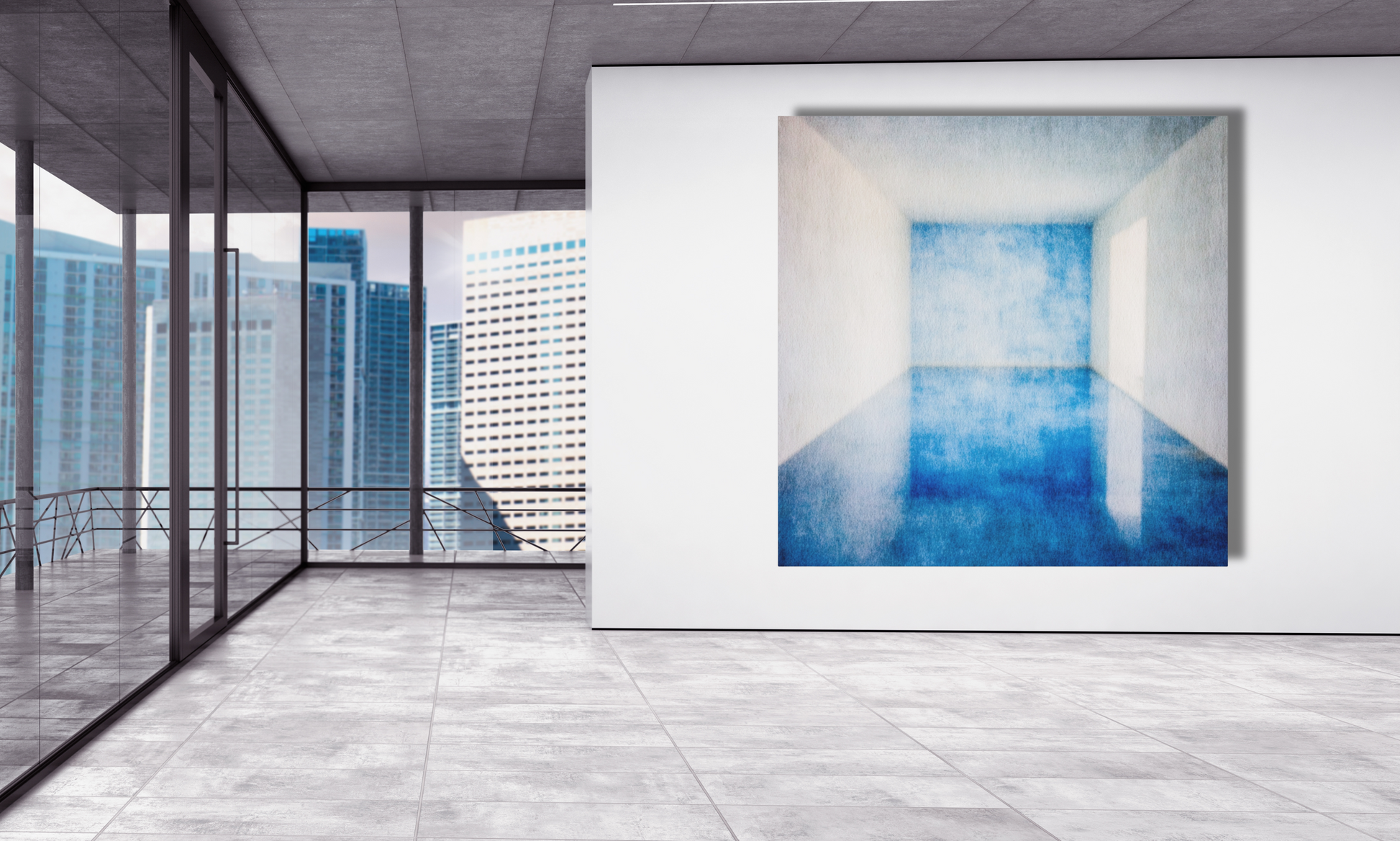 Abstract Empty Blue Gallery Room - Canvas Wall Art