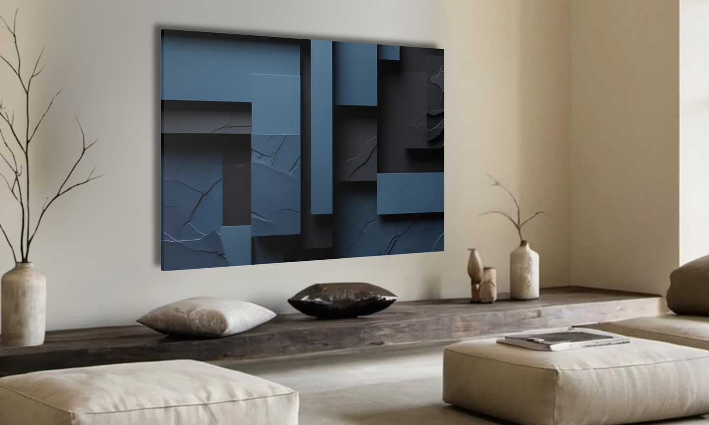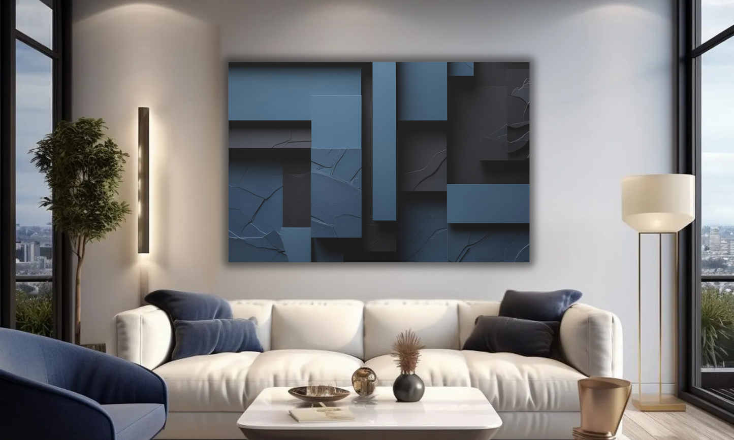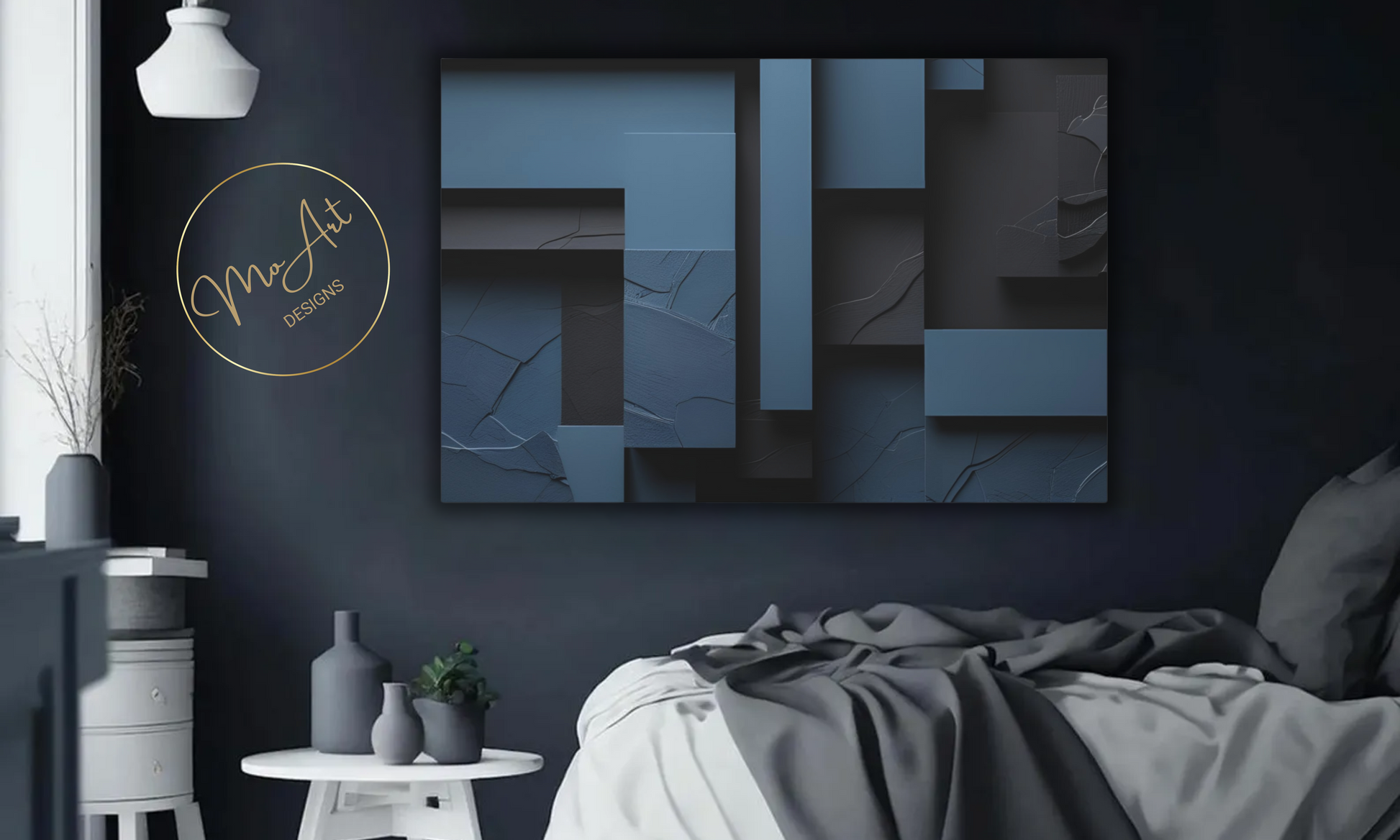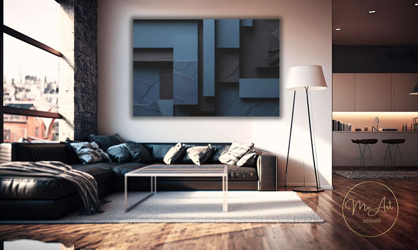Abstract geometric blue and black canvas wall art combines bold shapes and contrasting colors to create a striking visual centerpiece for modern interiors. Featuring a dynamic interplay of blue and black hues, the artwork emphasizes clean lines and geometric patterns that evoke a sense of movement and sophistication. Printed on high-quality canvas, it offers durability and vibrant color accuracy, making it an ideal addition to contemporary living spaces, offices, or art collections seeking a stylish and impactful decorative element.