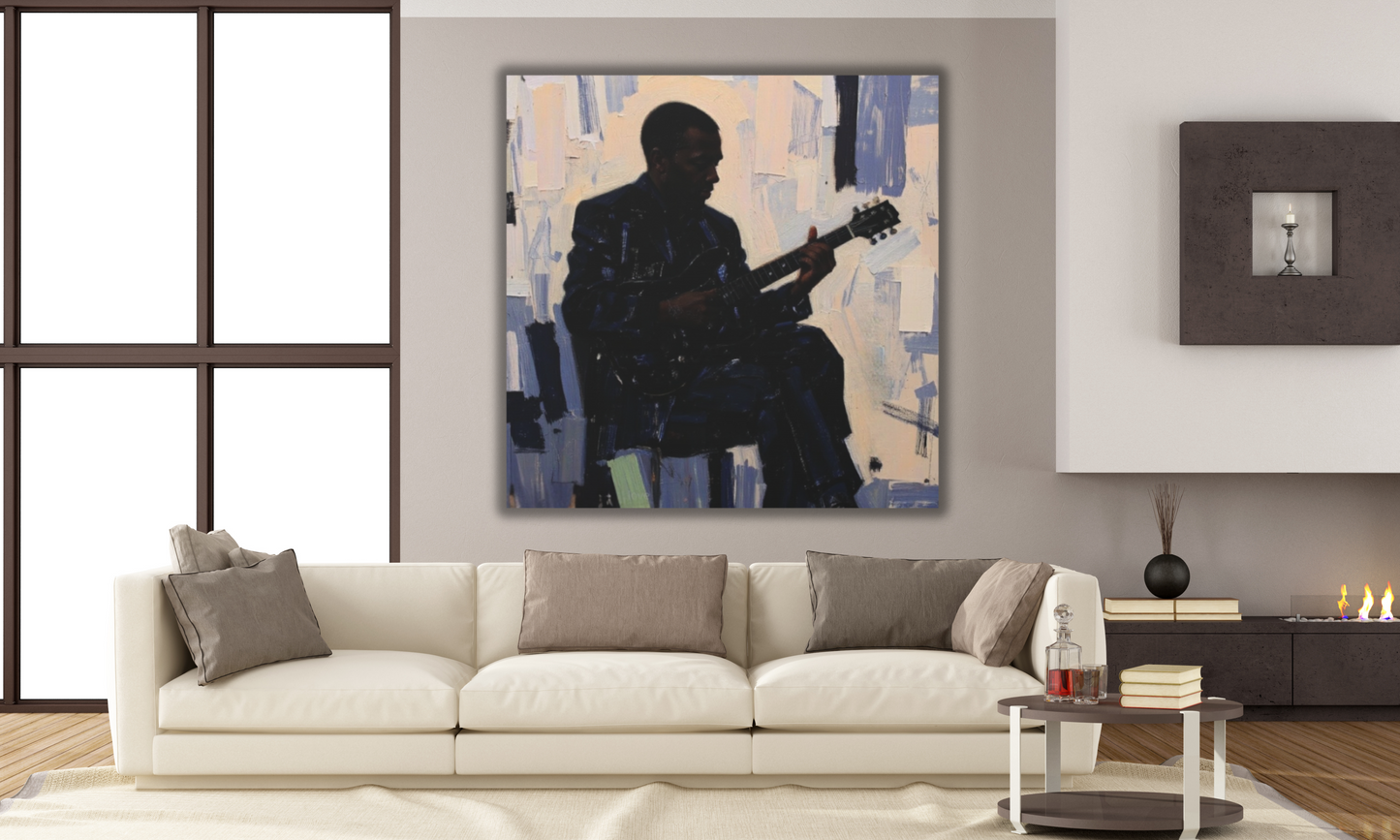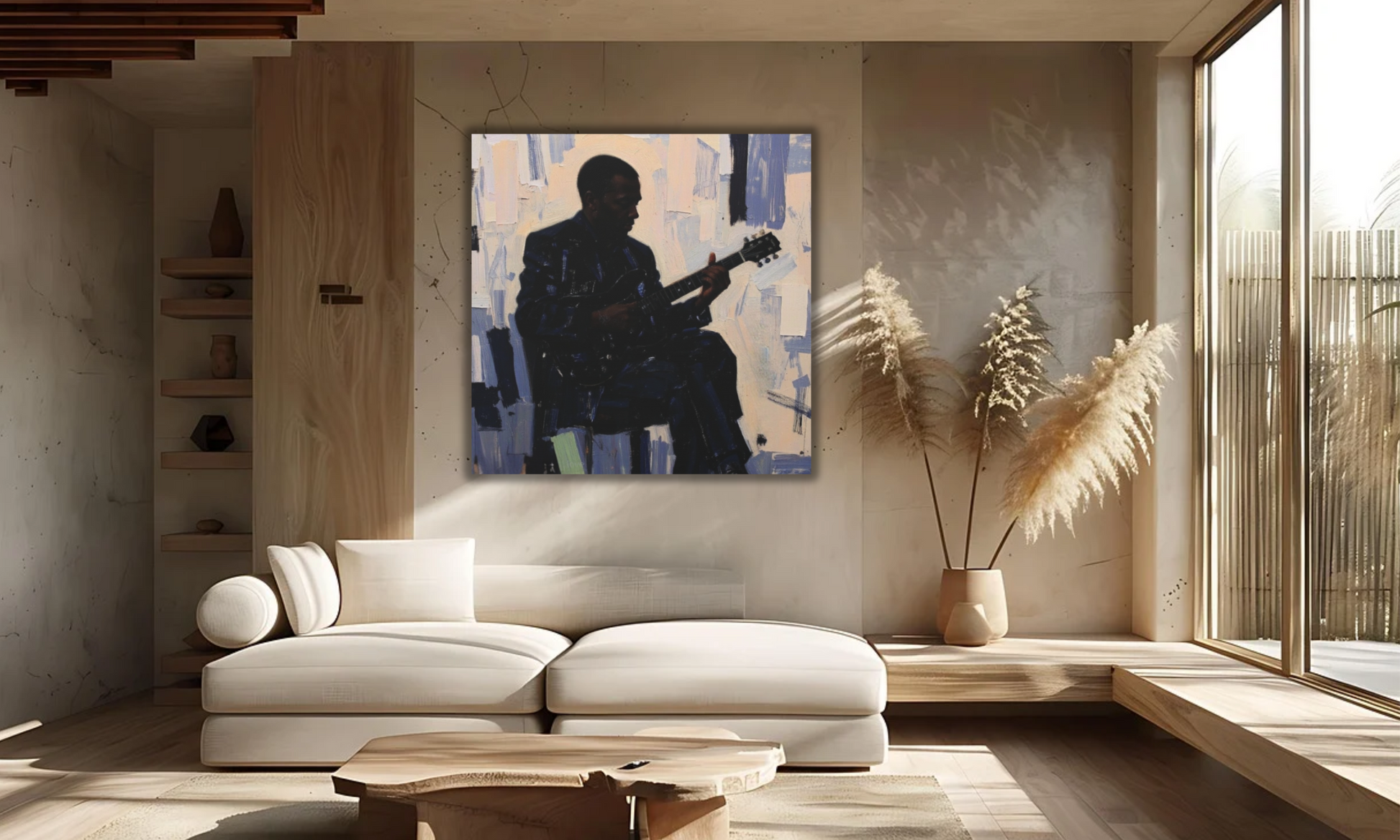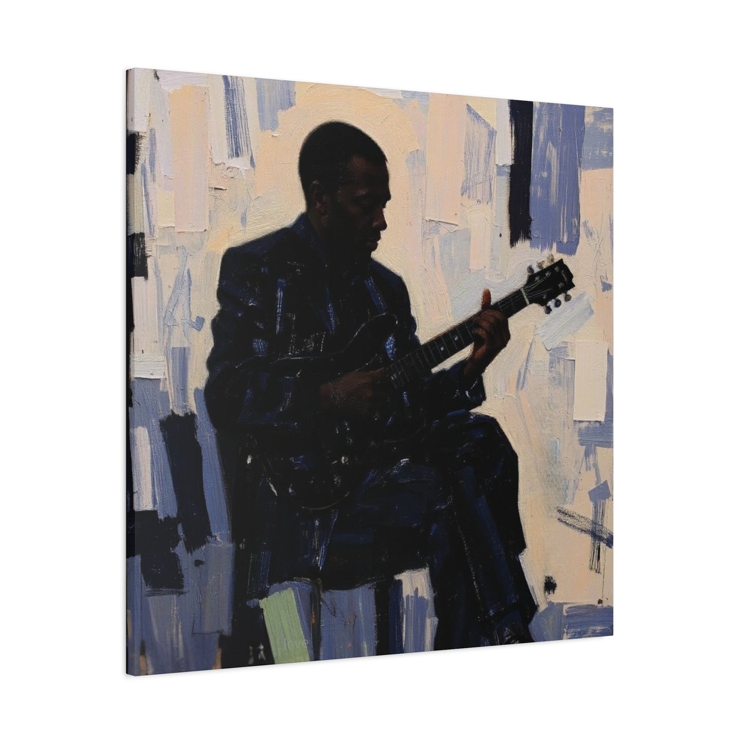 "Abstract Blues Jazz Guitarist" canvas art captures the soulful essence of blues/jazz music through expressive brushstrokes, emphasizing the dynamic energy and improvisational spirit of jazz guitarists. Perfect for music enthusiasts and art lovers alike, it adds a touch of sophistication and musical inspiration to any space. The high-quality print on durable canvas ensures lasting visual impact, making it an ideal decorative piece for homes, music studios, or jazz clubs.