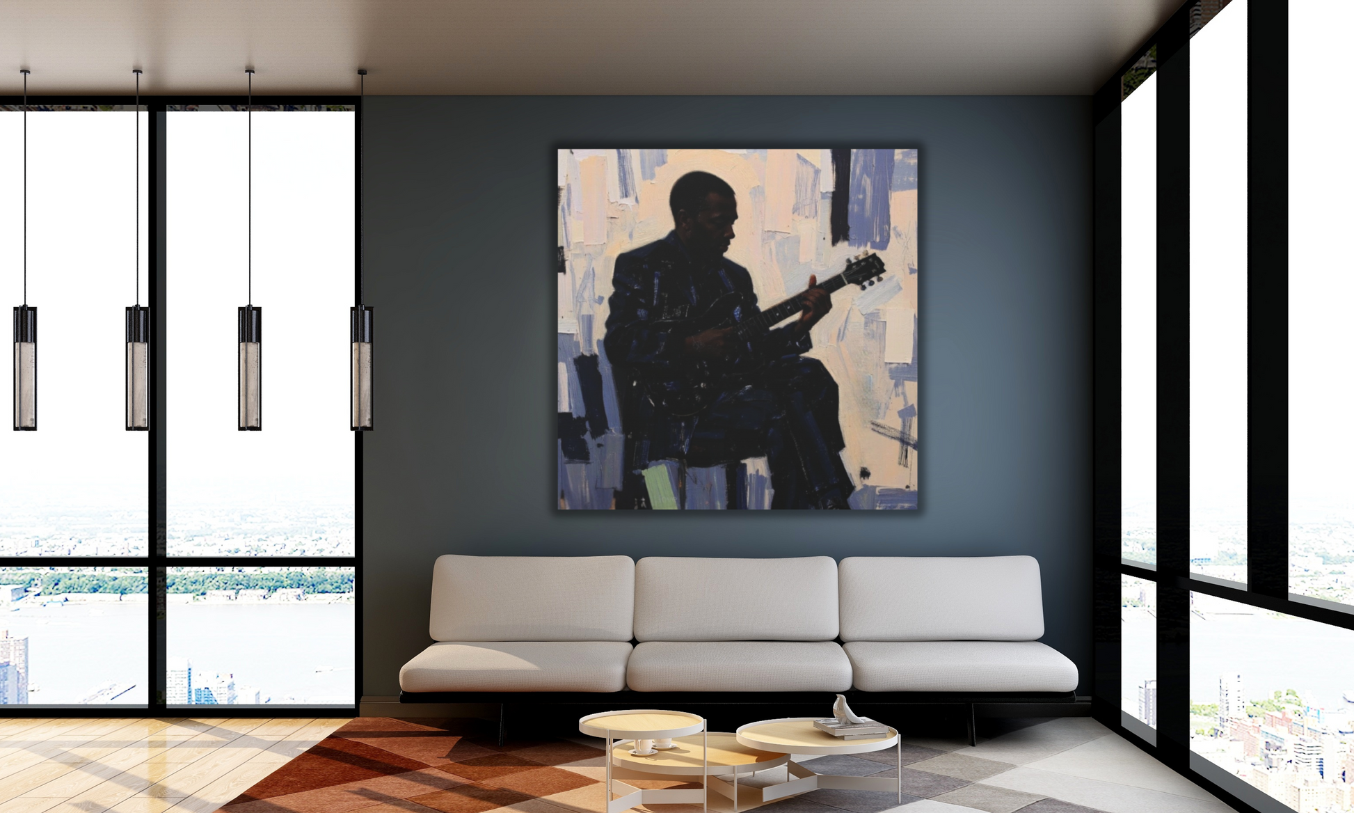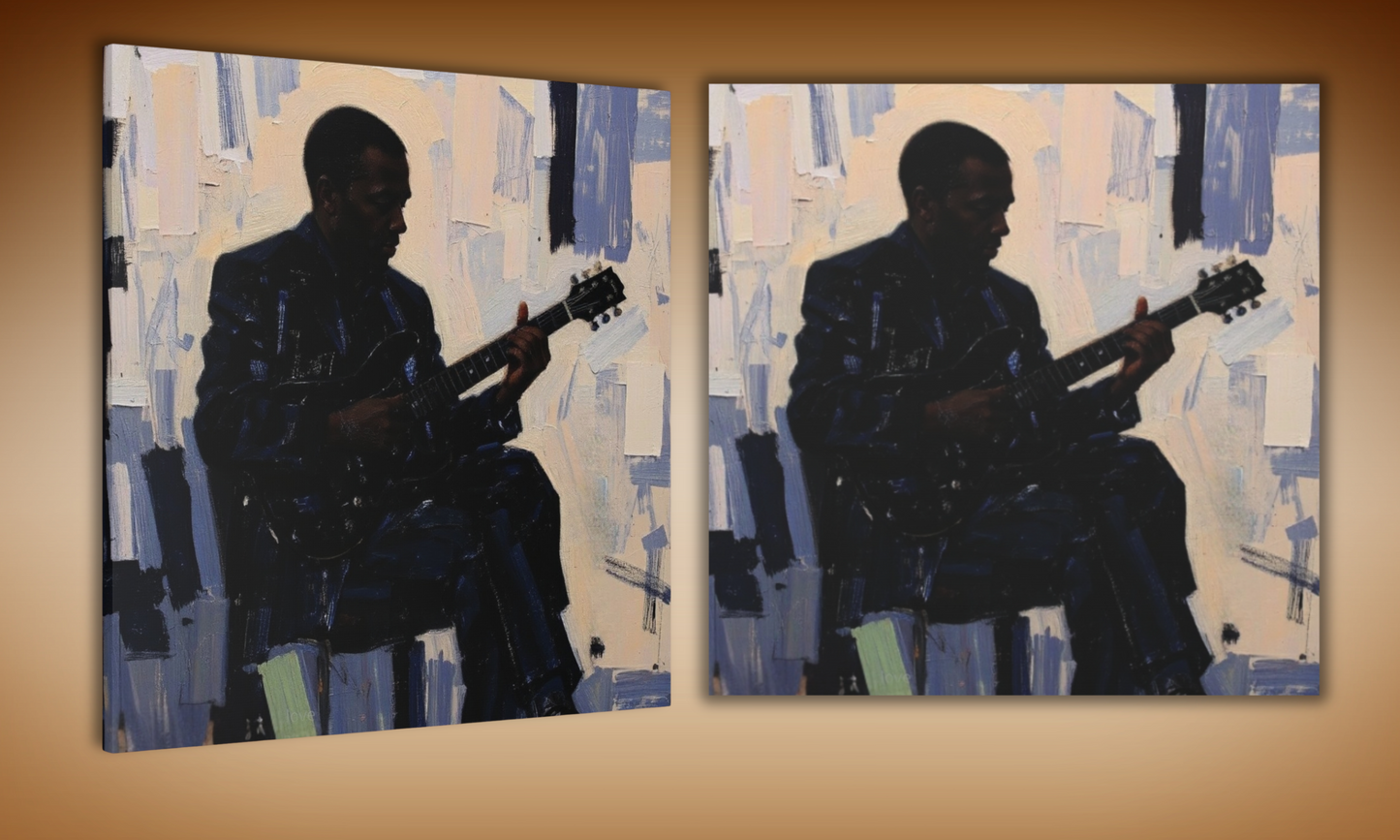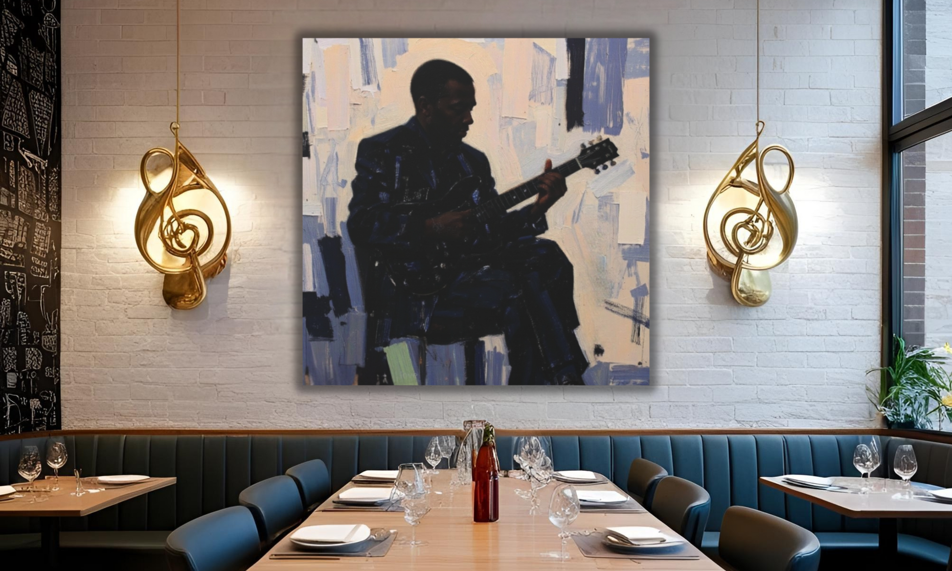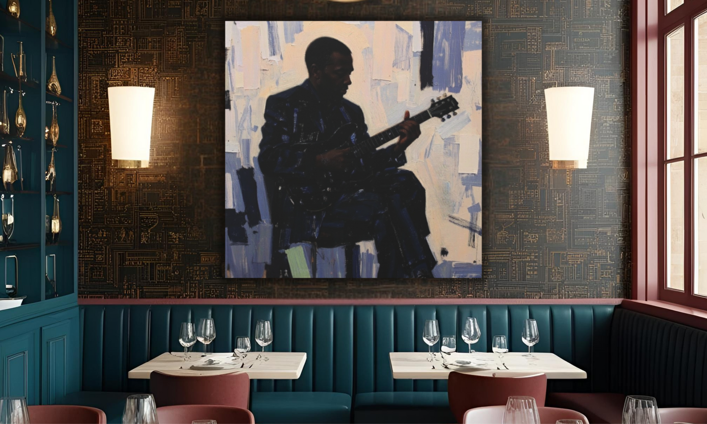 "Abstract Blues Jazz Guitarist" canvas art captures the soulful essence of blues/jazz music through expressive brushstrokes, emphasizing the dynamic energy and improvisational spirit of jazz guitarists. Perfect for music enthusiasts and art lovers alike, it adds a touch of sophistication and musical inspiration to any space. The high-quality print on durable canvas ensures lasting visual impact, making it an ideal decorative piece for homes, music studios, or jazz clubs.