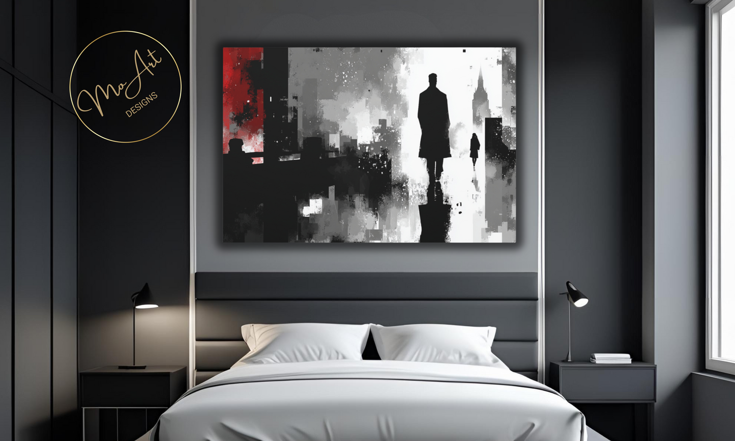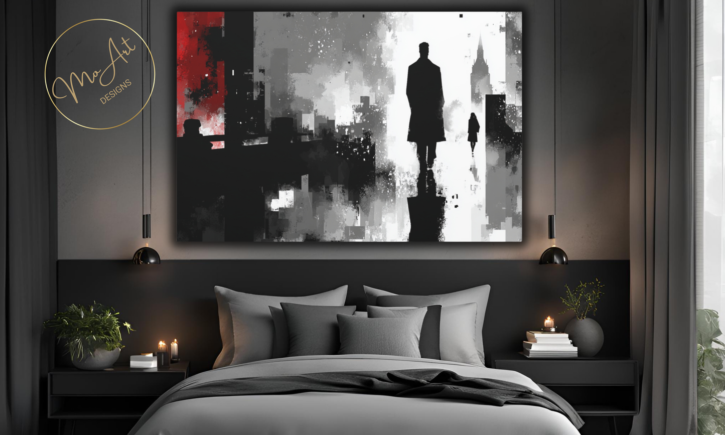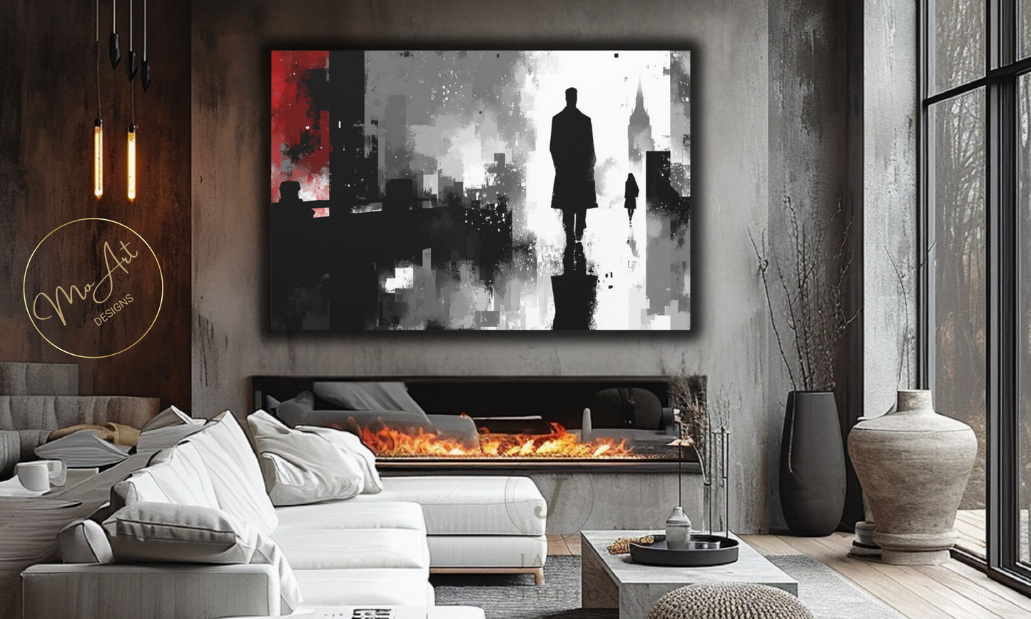 Abstract Shadows of the City canvas wall art masterfully interprets urban landscapes through a moody, atmospheric lens, emphasizing shadowy silhouettes and layered textures that evoke mystery and depth. The artwork's muted color palette and abstract forms symbolize the interplay of light and darkness within cityscapes, creating a sophisticated and evocative focal point for modern interiors. Printed on durable, high-quality canvas, it adds an artistic and contemplative element to living rooms, offices, or gallery walls, transforming urban inspiration into compelling wall decor.