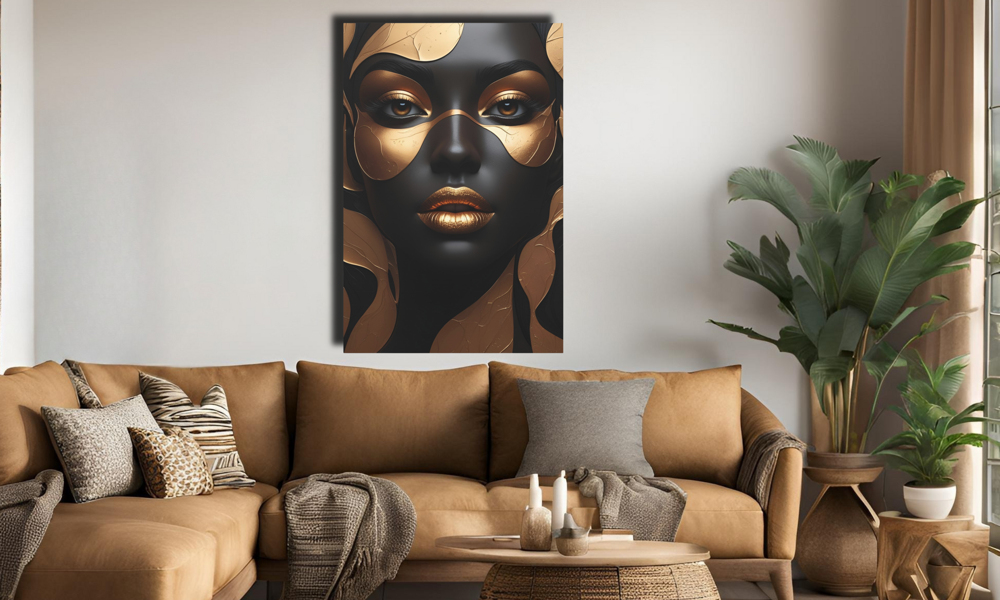 The "Woman in Black and Gold" canvas wall art is a striking and elegant piece that captures the mysterious allure of a woman depicted in bold black and gold tones, making it an eye-catching addition to any decor. Its abstract design lends a modern and sophisticated touch, perfect for enhancing contemporary interiors with a touch of intrigue and luxury. Crafted with high-quality materials, this artwork adds depth and artistic flair to living rooms, bedrooms, or offices, serving as a compelling focal point that combines artistry with stylish minimalism.