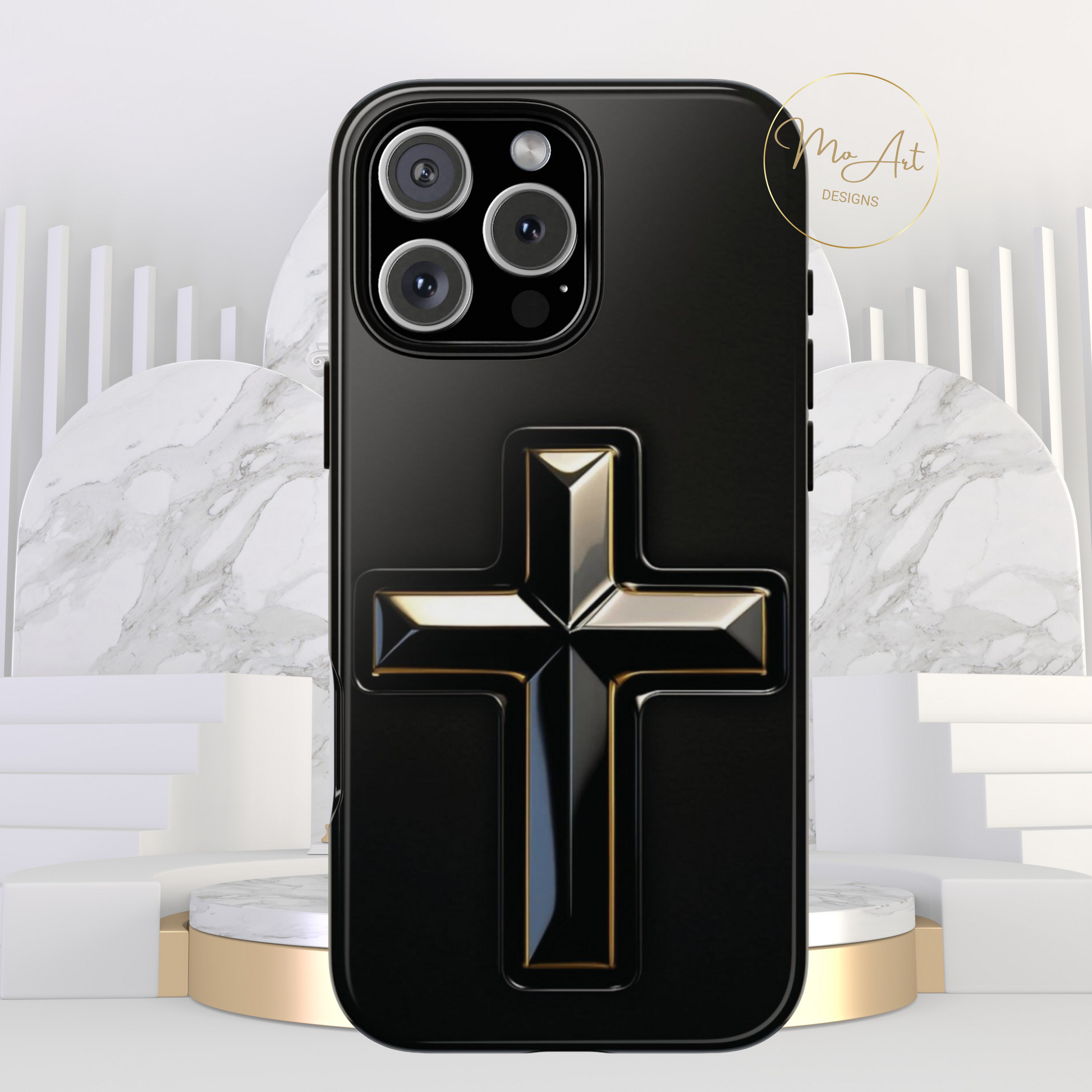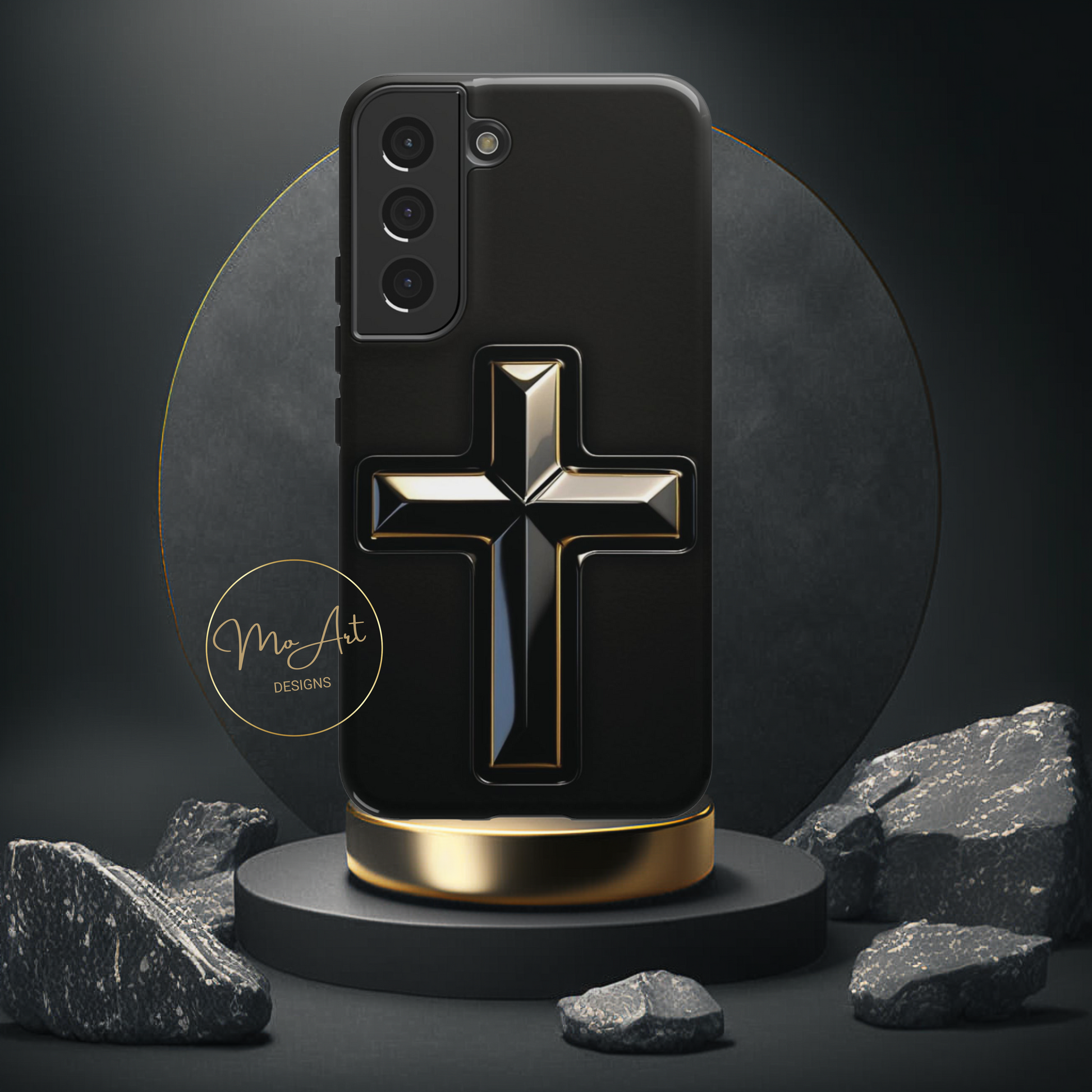 Embrace your faith in style with this elegant Black & Gold Cross Phone Case. Featuring a sleek matte black background and a striking metallic cross design, this case combines modern minimalism with spiritual symbolism. The high-shine gold accents create a luxurious and durable look, perfect for everyday protection and expression of your beliefs.