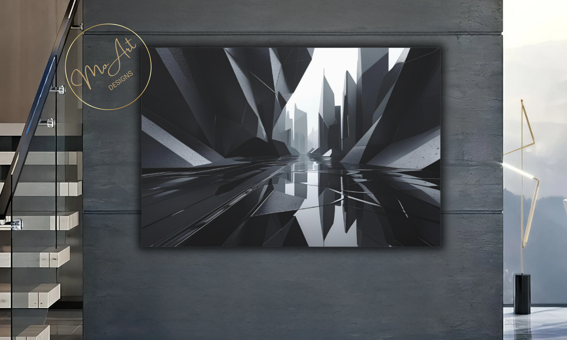 The "Black and White Abstract / Reflections of a City" Canvas Wall Art is a captivating piece that uses monochrome tones to evoke the energy and complexity of urban life through abstract reflections. Its bold contrasts and modern design make it a versatile addition to contemporary interiors, adding depth and sophistication to any space. Ideal for art enthusiasts and city lovers, this artwork transforms your walls into a visual reflection of the city's vibrant spirit and architectural allure.