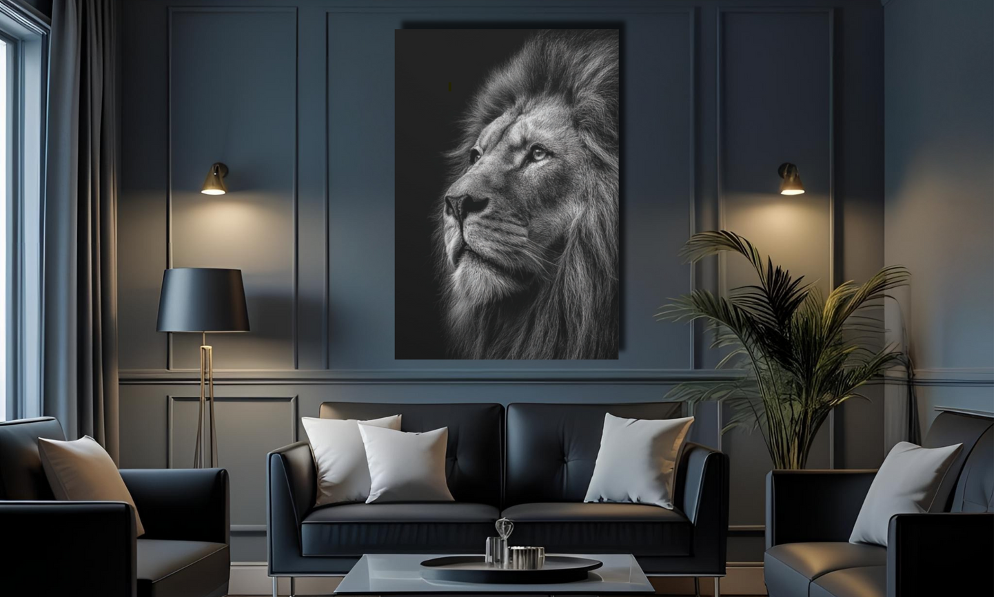 Black and White Lion Canvas Wall Art is a visually impactful piece that features a majestic lion rendered in monochrome, highlighting its regal and commanding presence. Perfect for enhancing modern, minimalist, or contemporary interiors, it adds a touch of strength, elegance, and sophistication to any space. Crafted from high-quality canvas, it offers durability and vibrant contrast, making it an ideal focal point for living rooms, offices, or bedrooms that seek to evoke power and wild beauty.