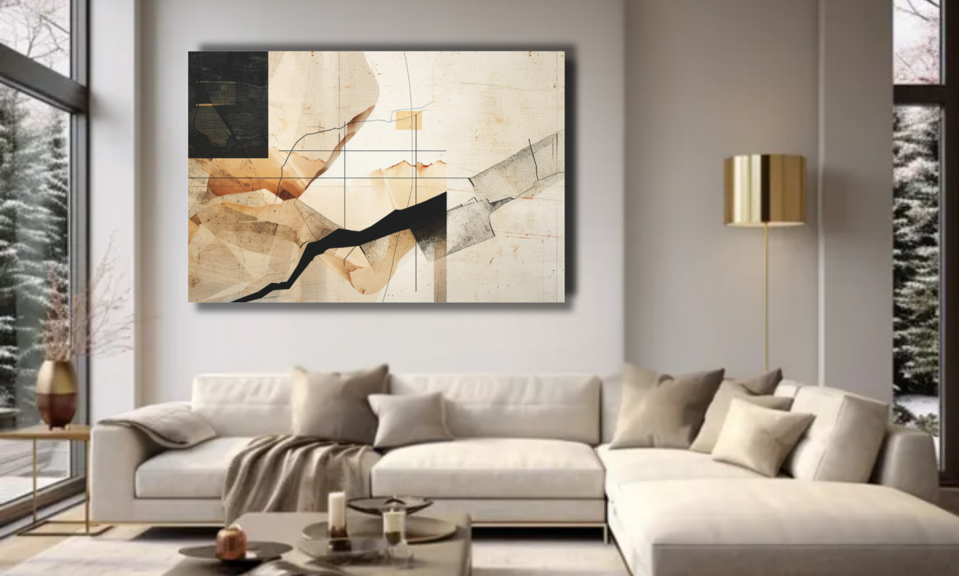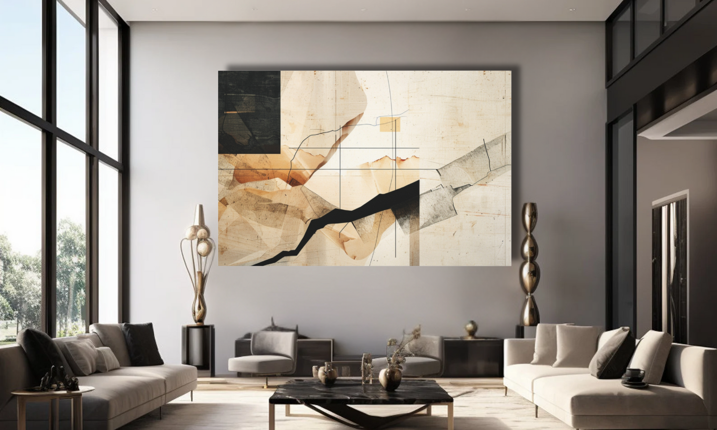 This black, beige and tan modern contemporary abstract canvas wall art features a harmonious blend of neutral tones and dynamic abstract patterns, making it a versatile and stylish addition to any modern interior. Its minimalist yet expressive design adds depth and sophistication, perfect for creating a focal point in living rooms, bedrooms, or offices. Crafted with high-quality materials, it ensures durability and vibrant color retention, elevating your decor with a contemporary artistic touch.