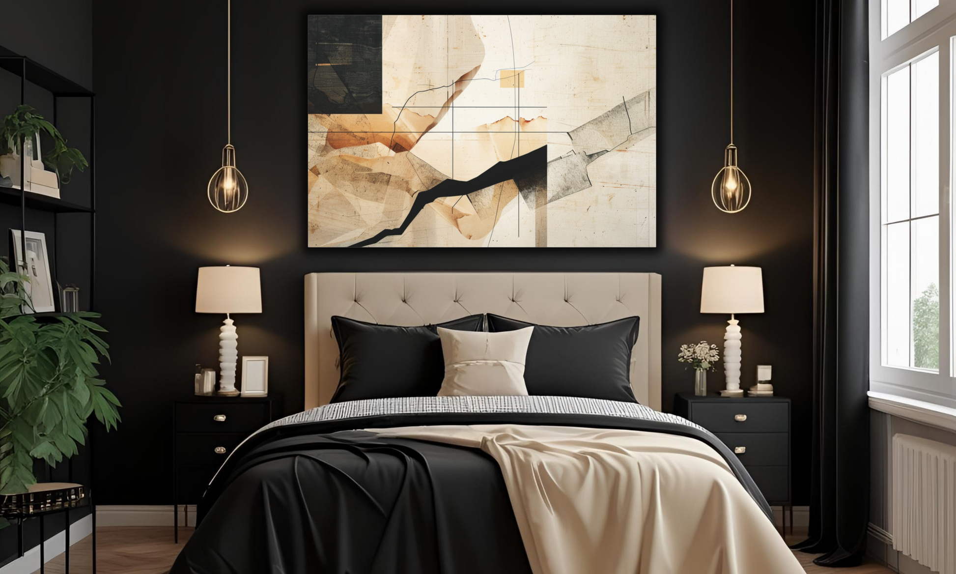 Black, Beige and Tan Modern Contemporary Abstract Canvas Wall Art