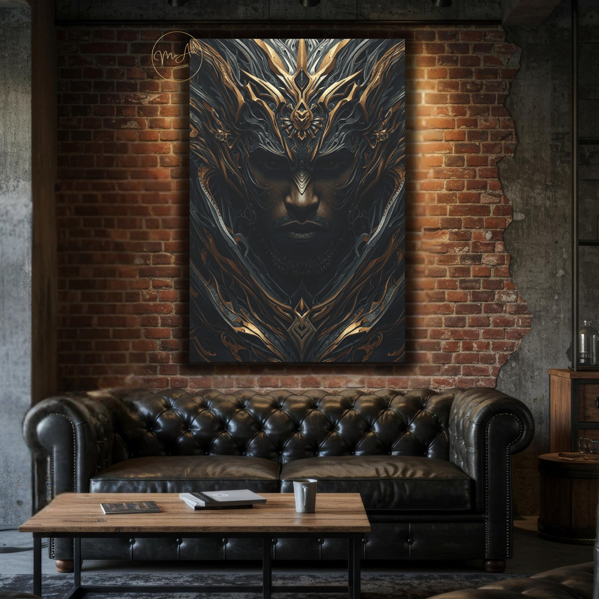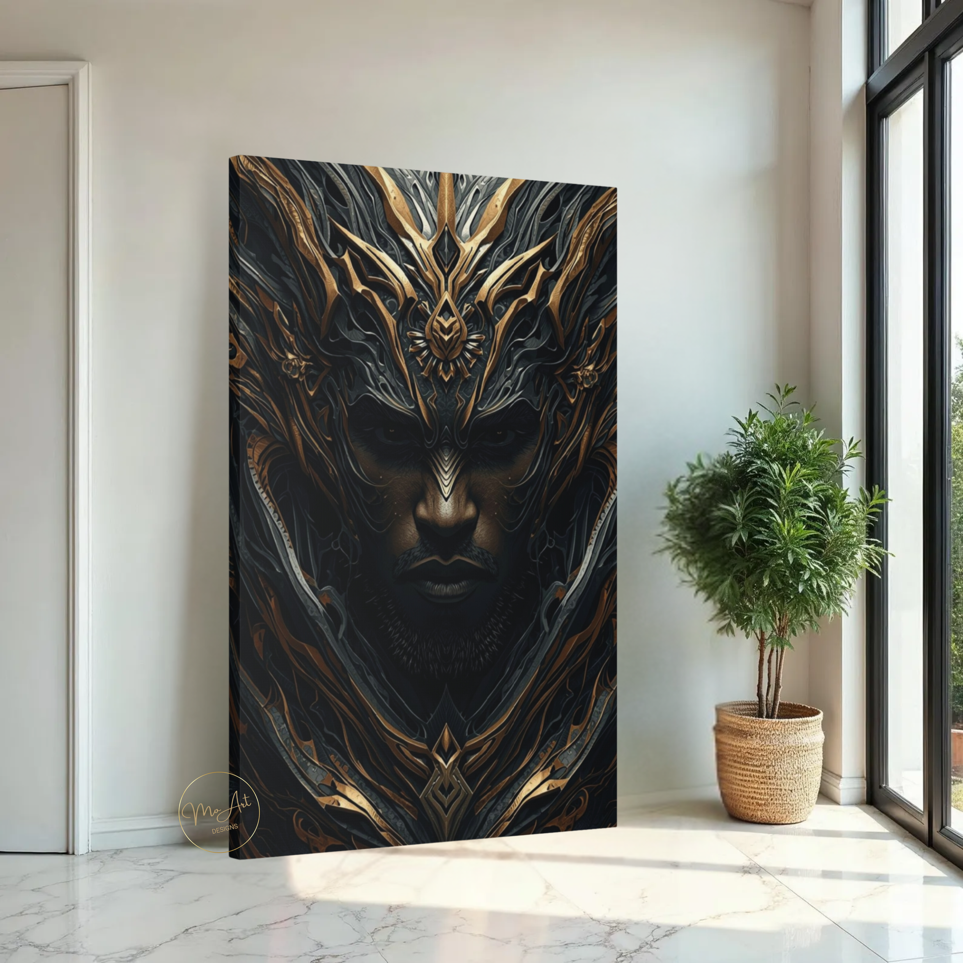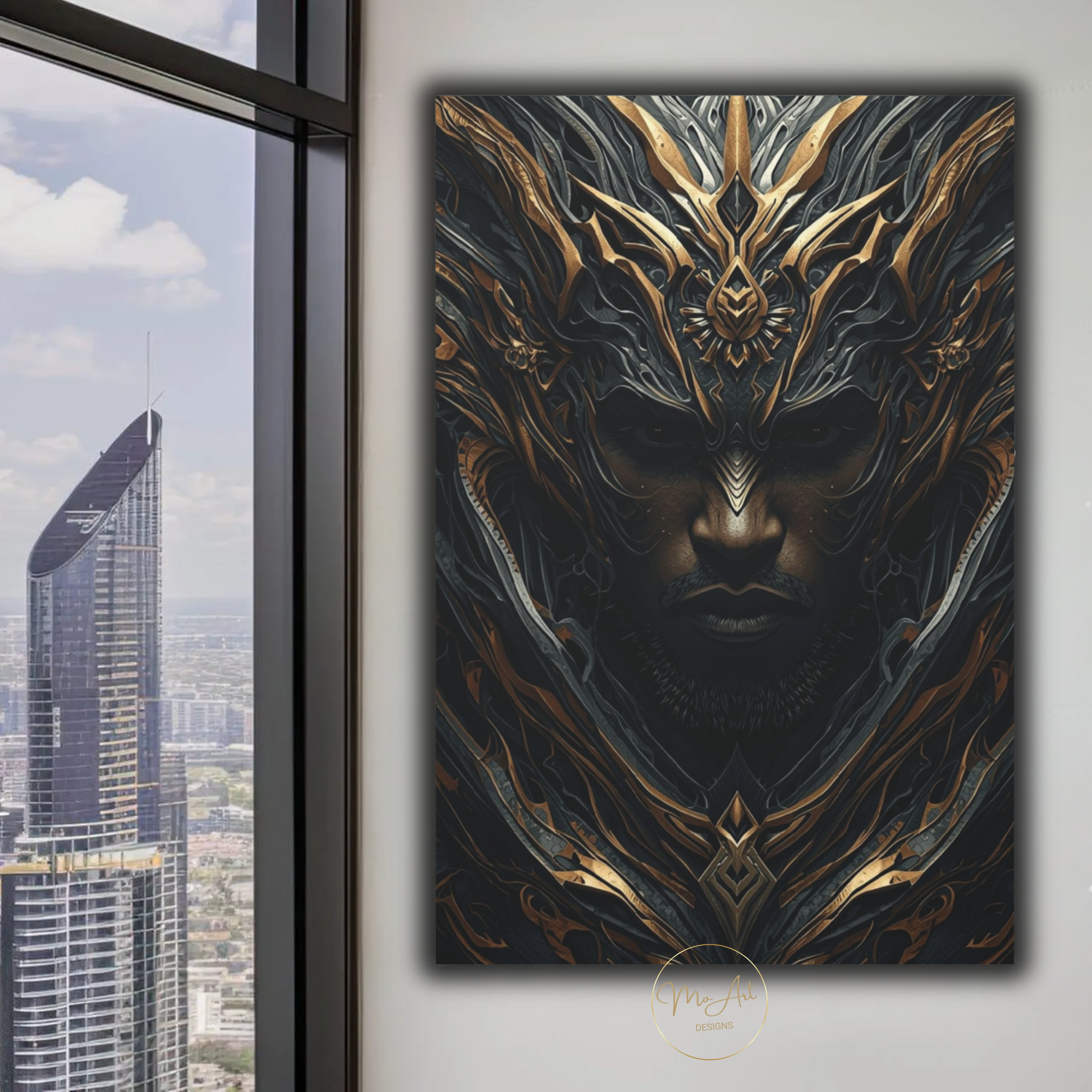 Divine Sentinel is a powerful Black Warrior Abstract Art digital download that symbolizes protection, strength, and ancestral authority. Designed in deep black tones with radiant gold accents, this Afrocentric artwork represents a vigilant guardian—bold, regal, and timeless.