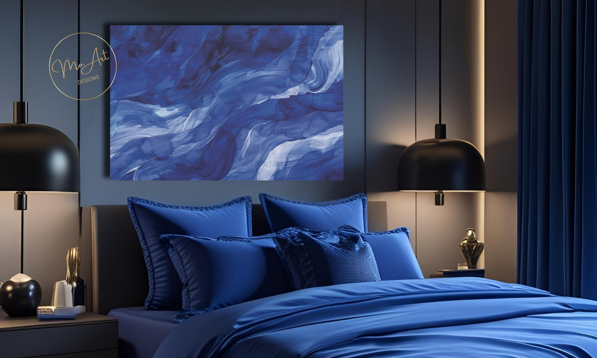 “Currents of Blue Serenity” is an abstract canvas artwork that captures the fluid elegance and emotional depth of motion through layered brushstrokes in rich shades of blue and soft white. The sweeping, wave-like forms evoke the rhythm of ocean currents or flowing air, creating a sense of both calm and energy. Variations in tone and texture give the piece a dynamic visual flow, while subtle details invite closer introspection. This artwork invites the viewer to drift into a meditative state, where movement meets tranquility and color becomes emotion.