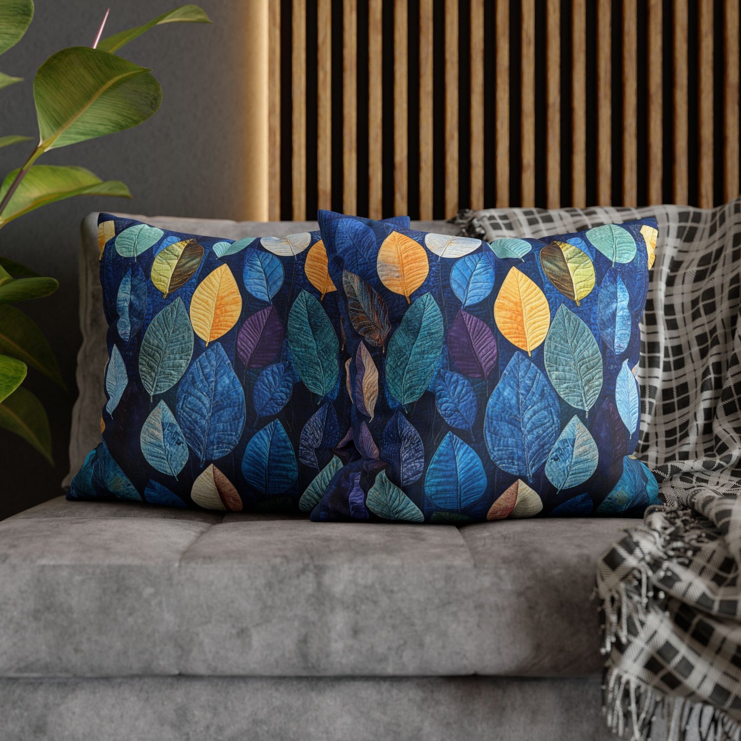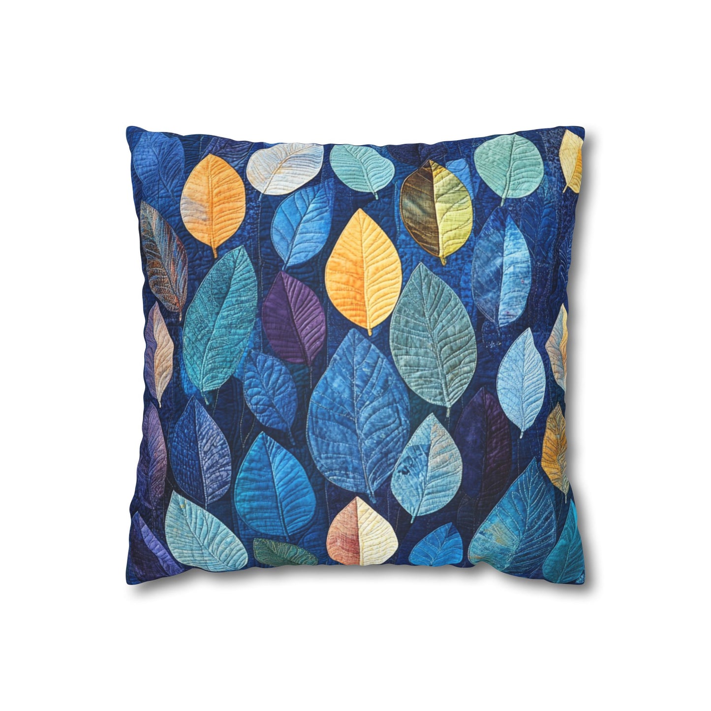 Decorative Blue Multicolor Leaf Design Faux Suede Pillow Case
