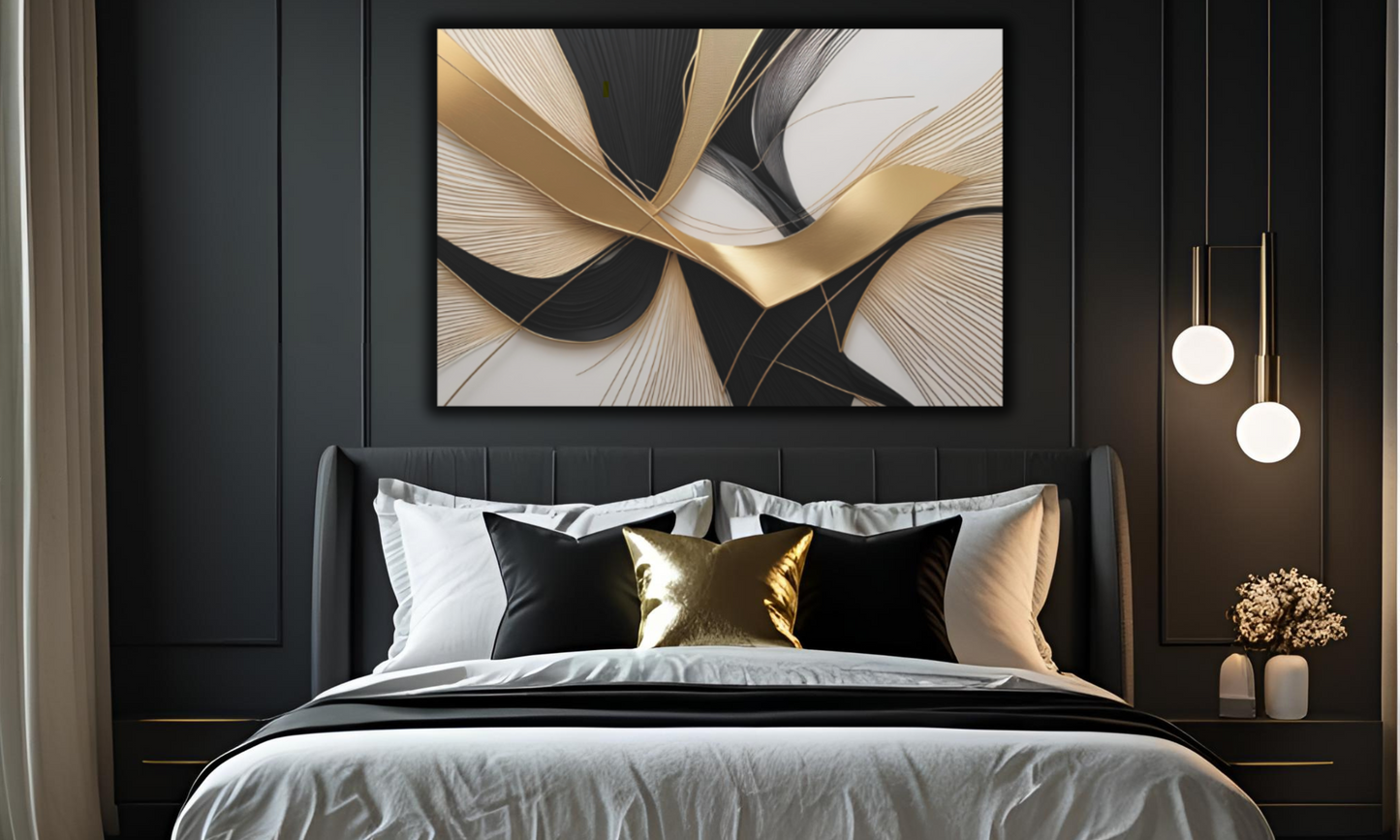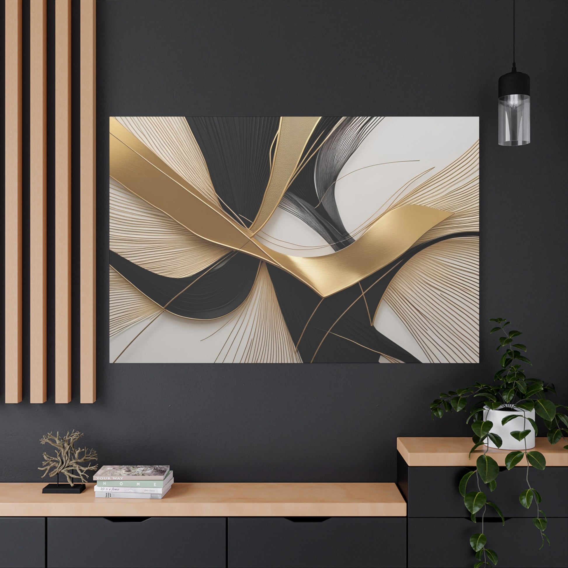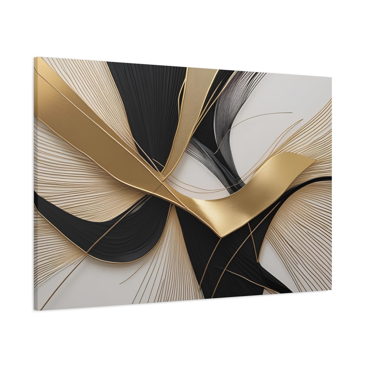 This Elegant Black and Gold Abstract Canvas Wall Art exudes sophistication with its sleek black brushstrokes paired with shimmering gold accents, creating a luxurious and timeless piece that elevates the aesthetic of any modern interior, perfect for adding a touch of class and contemporary style to your decor.