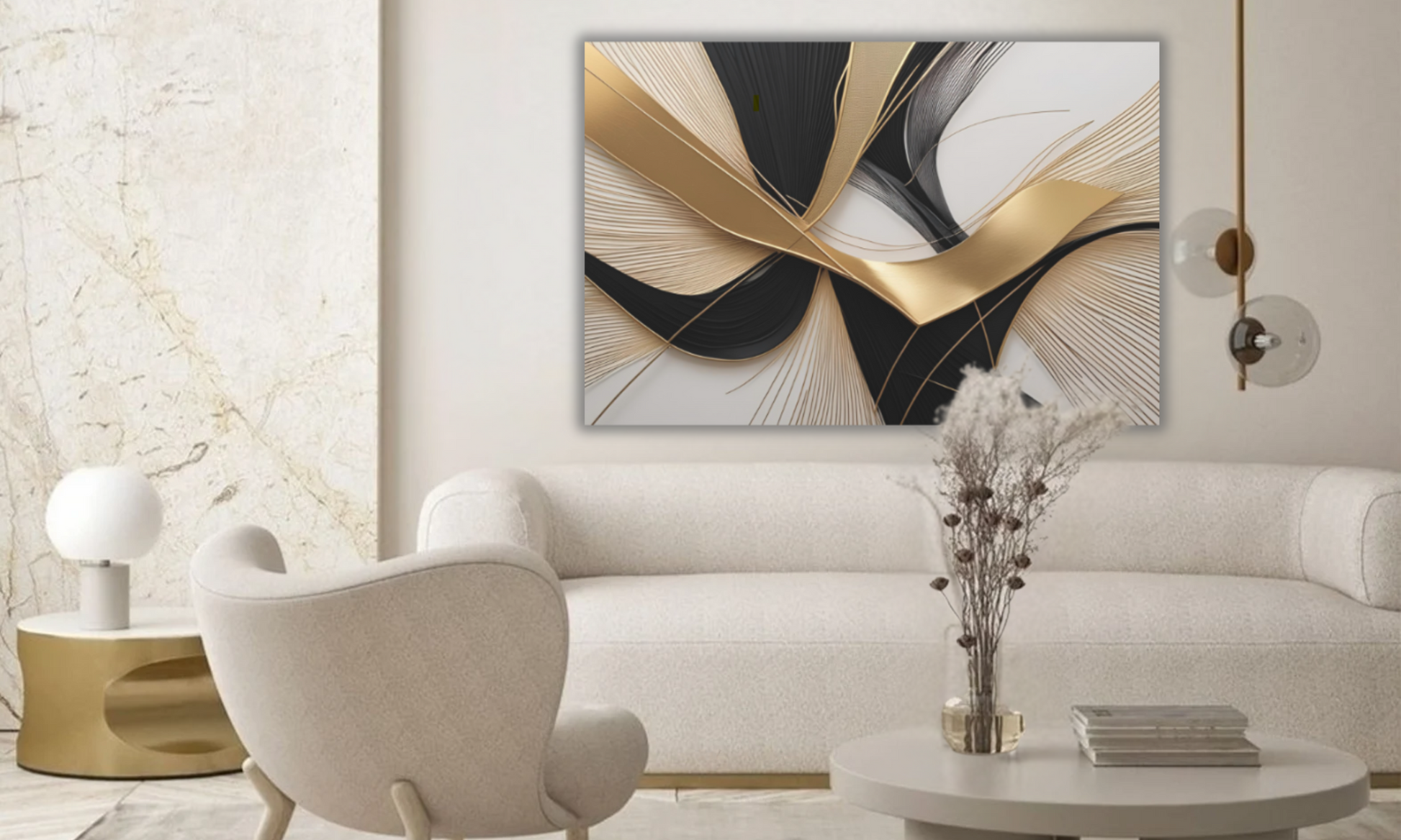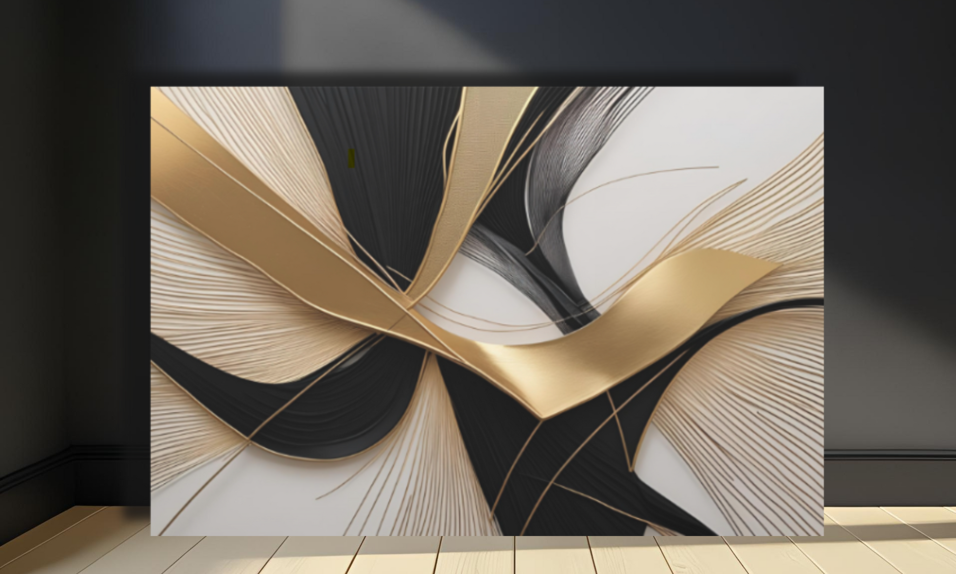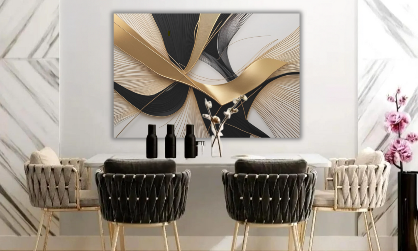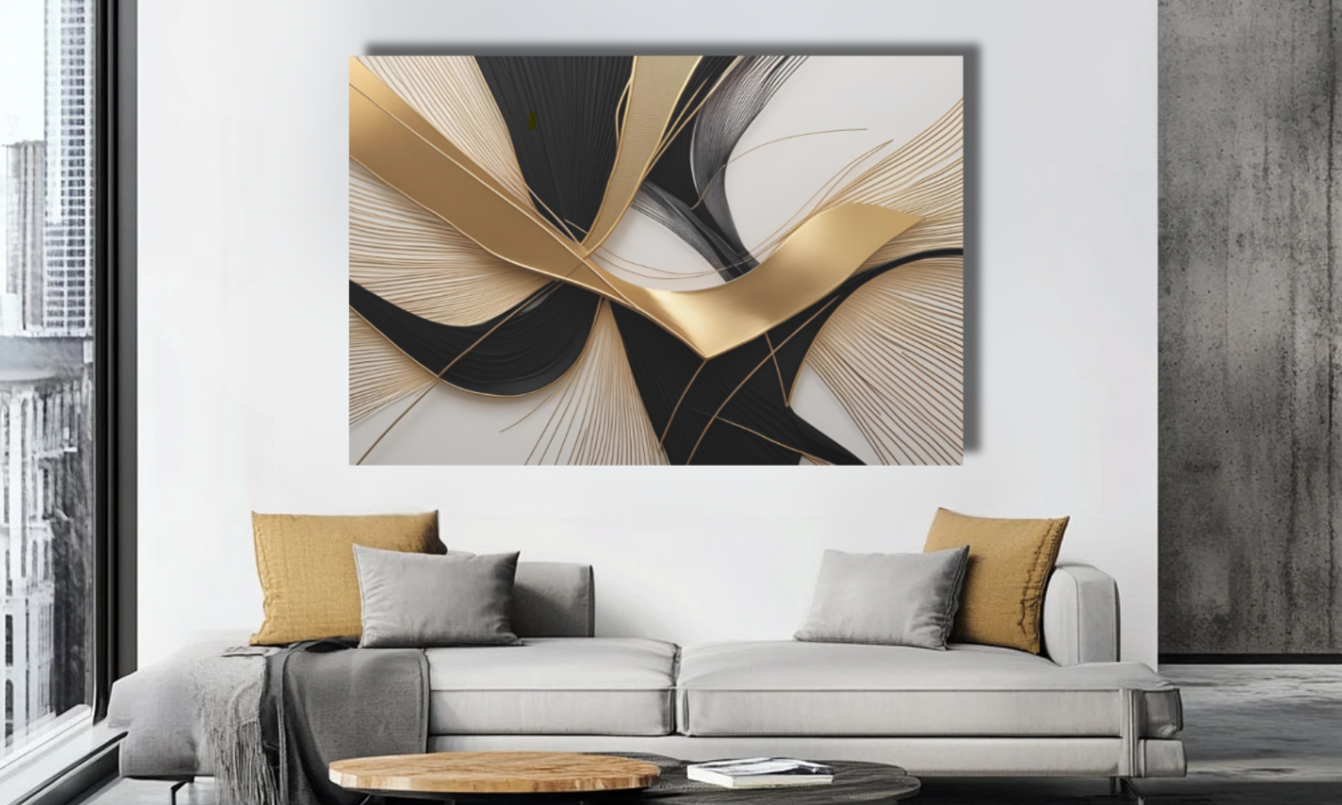 This Elegant Black and Gold Abstract Canvas Wall Art exudes sophistication with its sleek black brushstrokes paired with shimmering gold accents, creating a luxurious and timeless piece that elevates the aesthetic of any modern interior, perfect for adding a touch of class and contemporary style to your decor.
