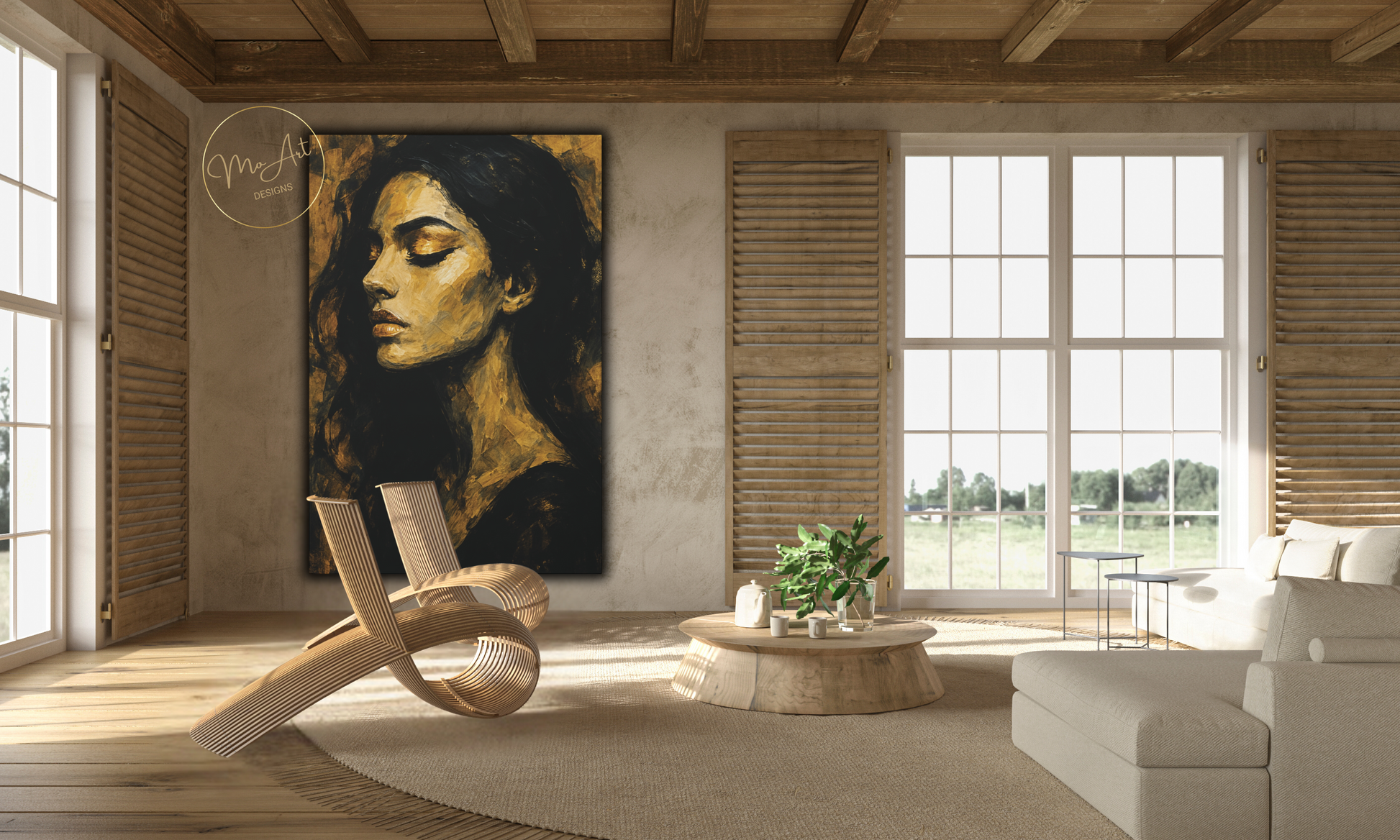 Perfect for modern, minimalist, or luxury-inspired interiors, this piece brings sophistication and soulful energy to your walls — a celebration of womanhood in its most luminous form.
