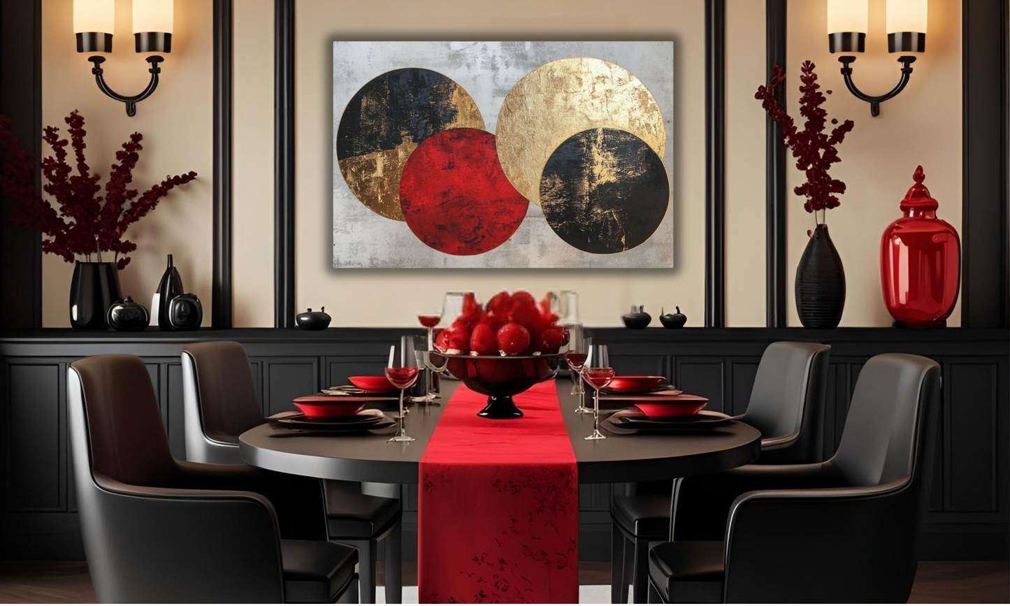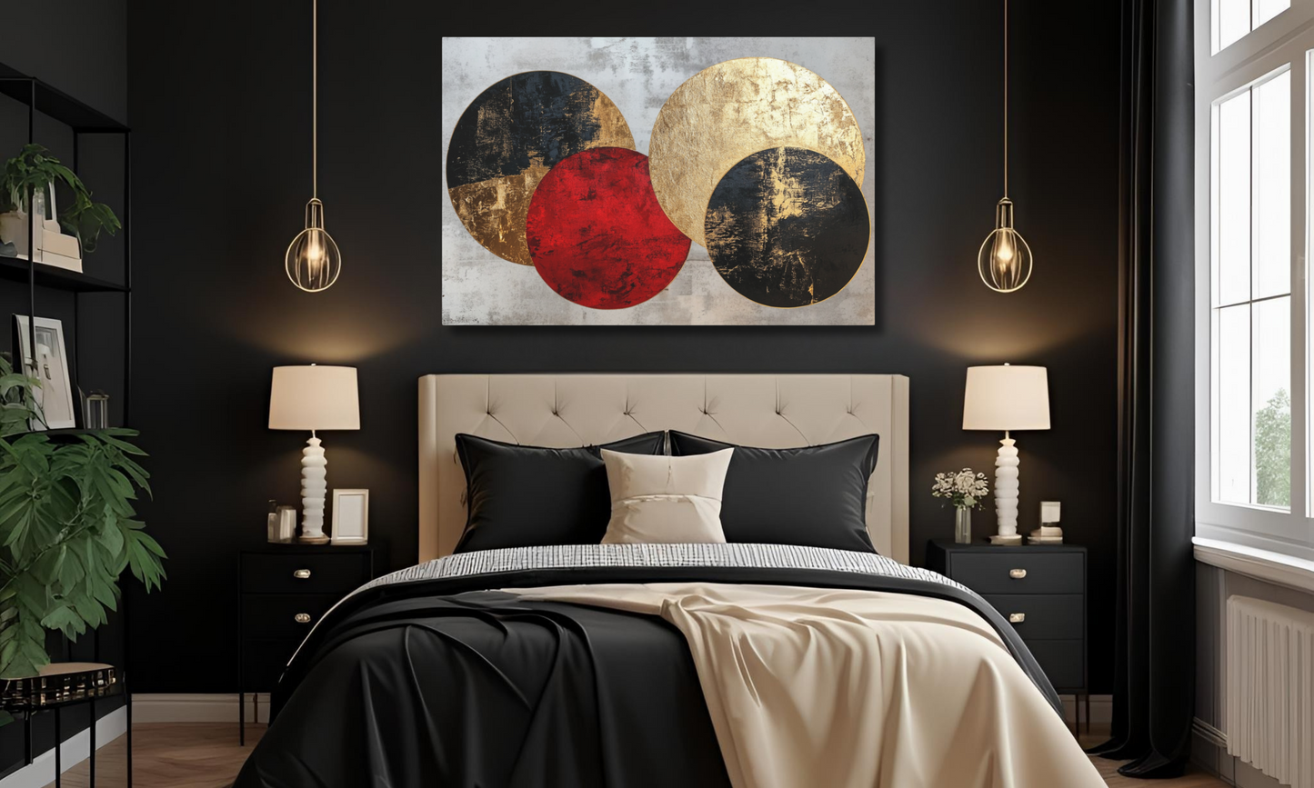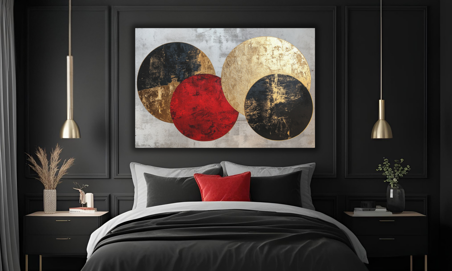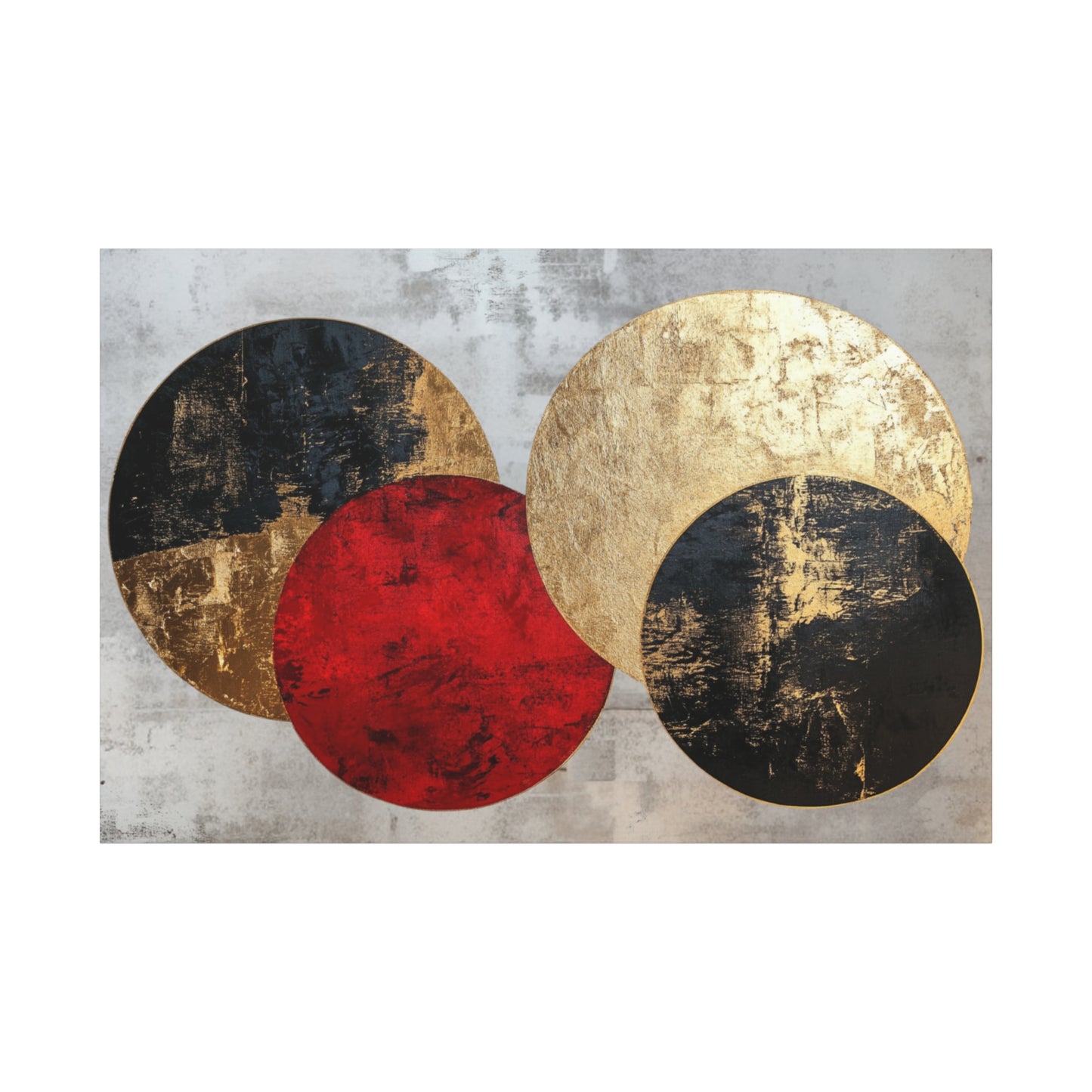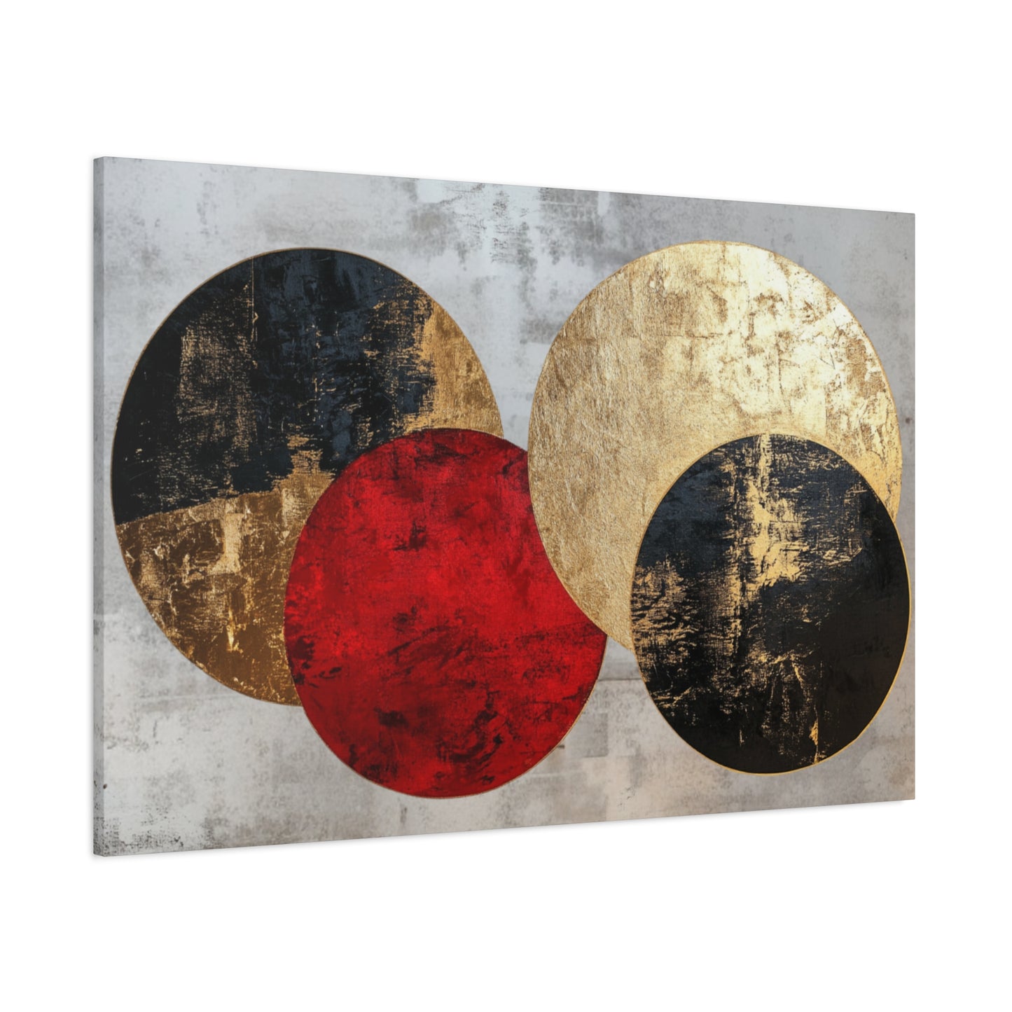 Gold, Black and Red Circle Abstract Canvas Wall Art