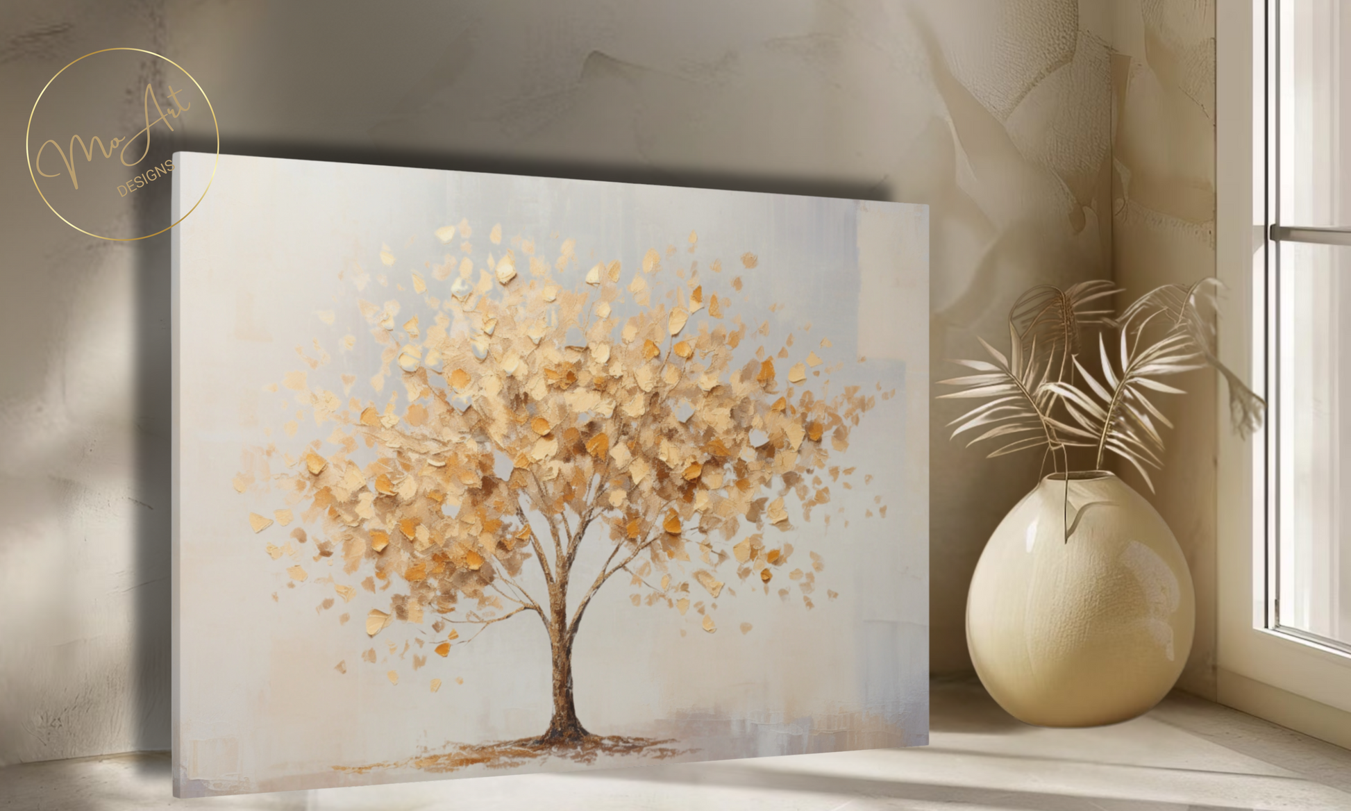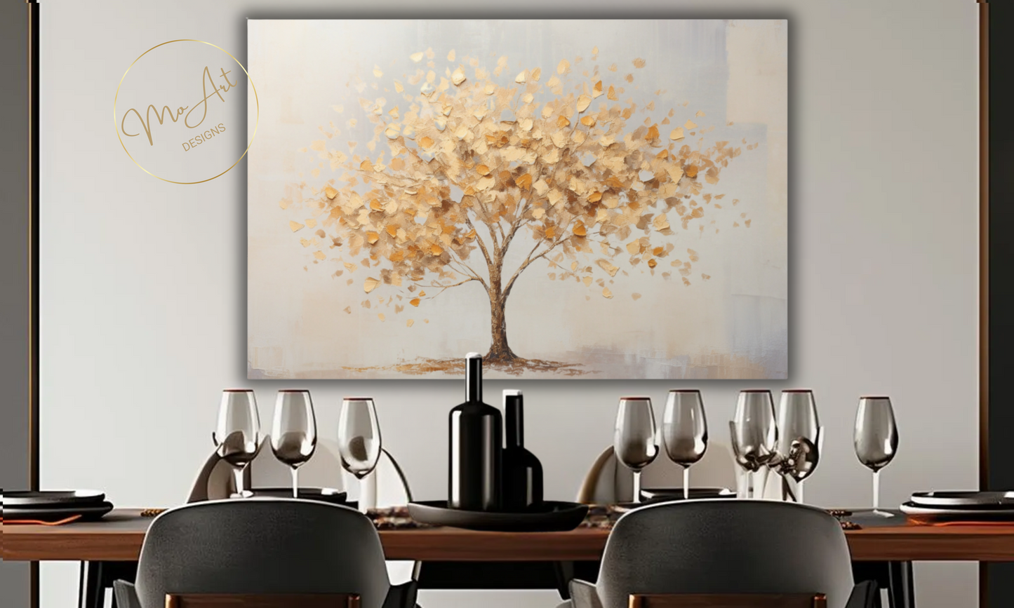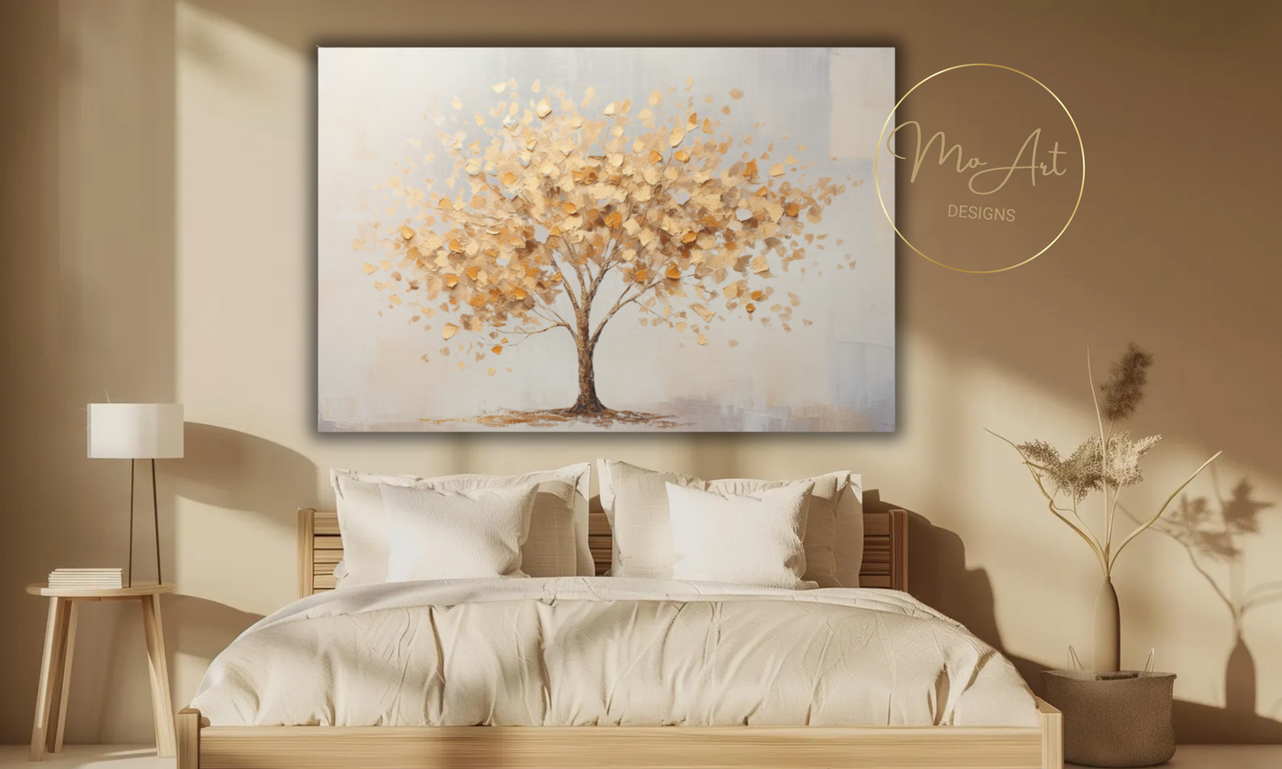 The Golden Leaf Tree Canvas Wall Art is a captivating decorative piece that showcases a beautifully designed tree with shimmering golden leaves, adding a touch of elegance and warmth to any space. Made from high-quality canvas, it features vibrant colors and detailed artwork that can complement a variety of interior styles, from modern to classic. Ideal for living rooms, bedrooms, or offices, this wall art creates a calming, nature-inspired atmosphere while serving as a stylish focal point, enhancing your home decor with a blend of artistry and natural beauty.
