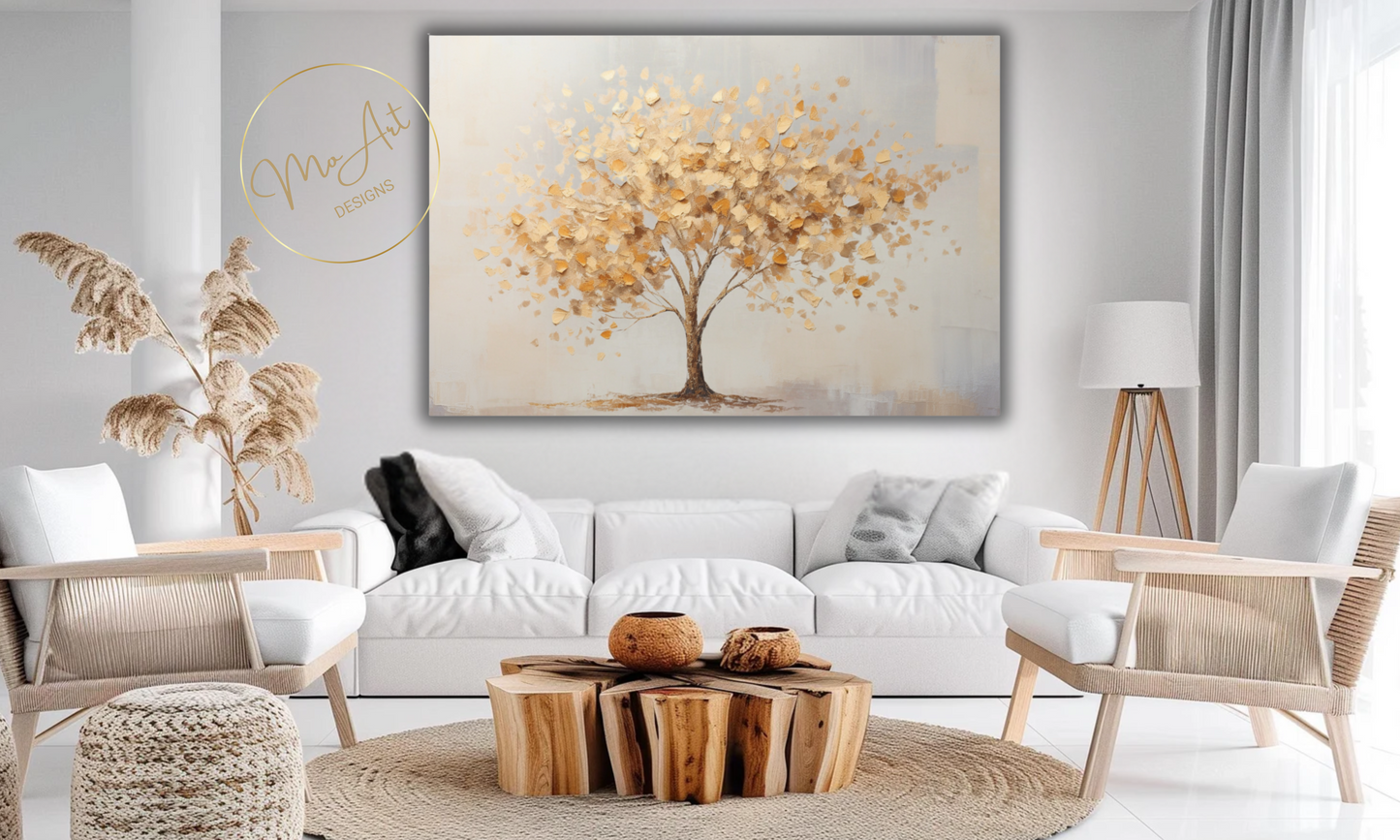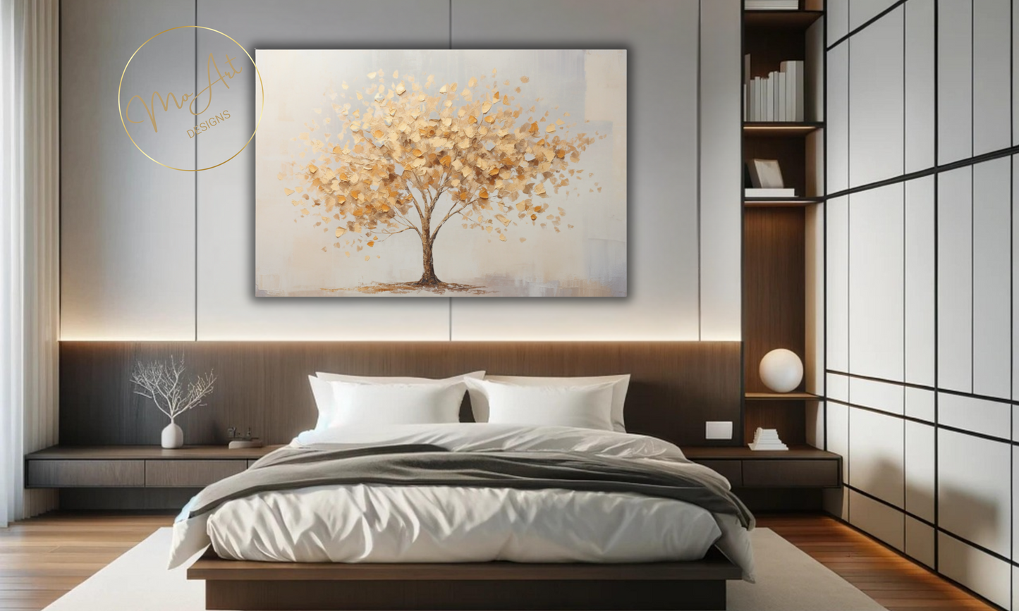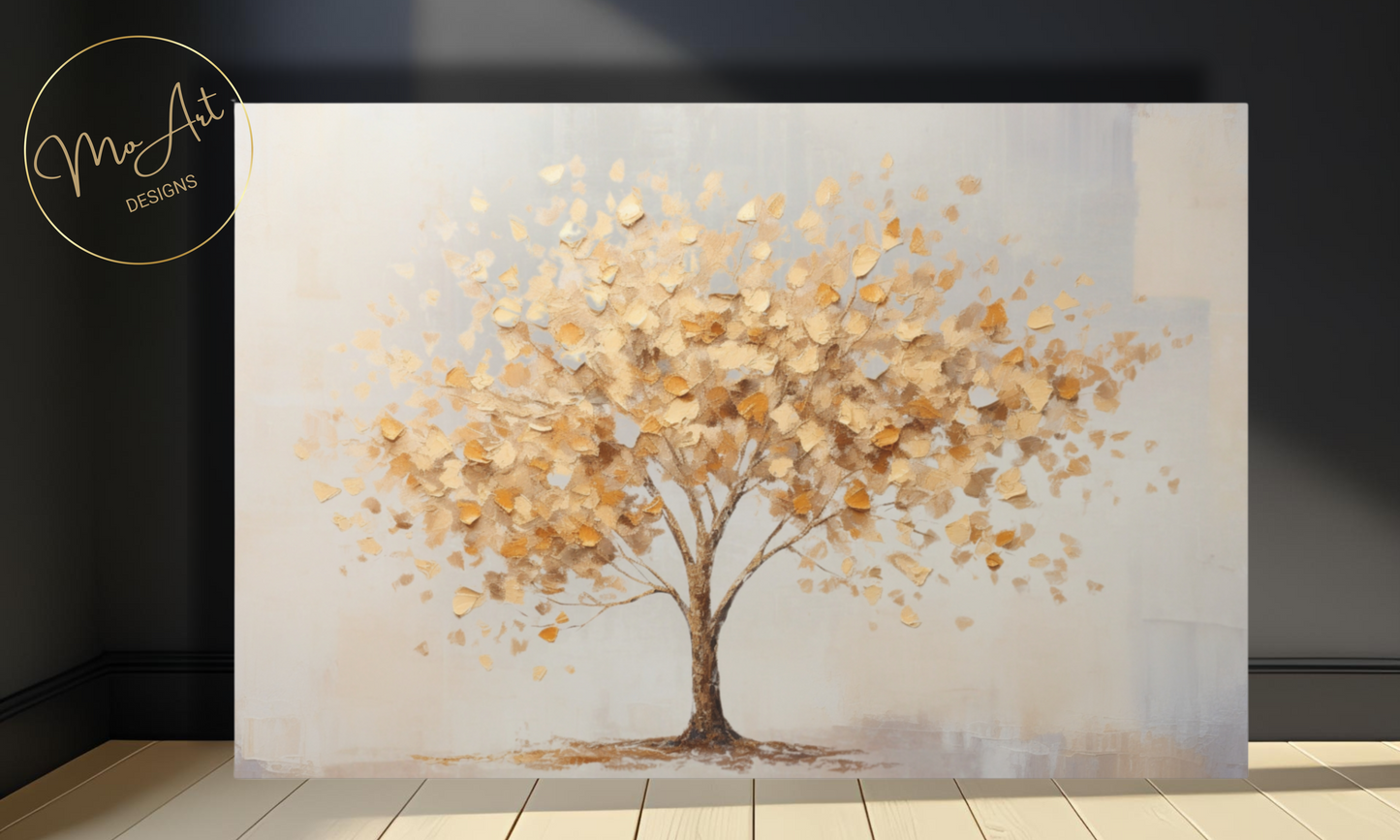 The Golden Leaf Tree Canvas Wall Art is a captivating decorative piece that showcases a beautifully designed tree with shimmering golden leaves, adding a touch of elegance and warmth to any space. Made from high-quality canvas, it features vibrant colors and detailed artwork that can complement a variety of interior styles, from modern to classic. Ideal for living rooms, bedrooms, or offices, this wall art creates a calming, nature-inspired atmosphere while serving as a stylish focal point, enhancing your home decor with a blend of artistry and natural beauty.