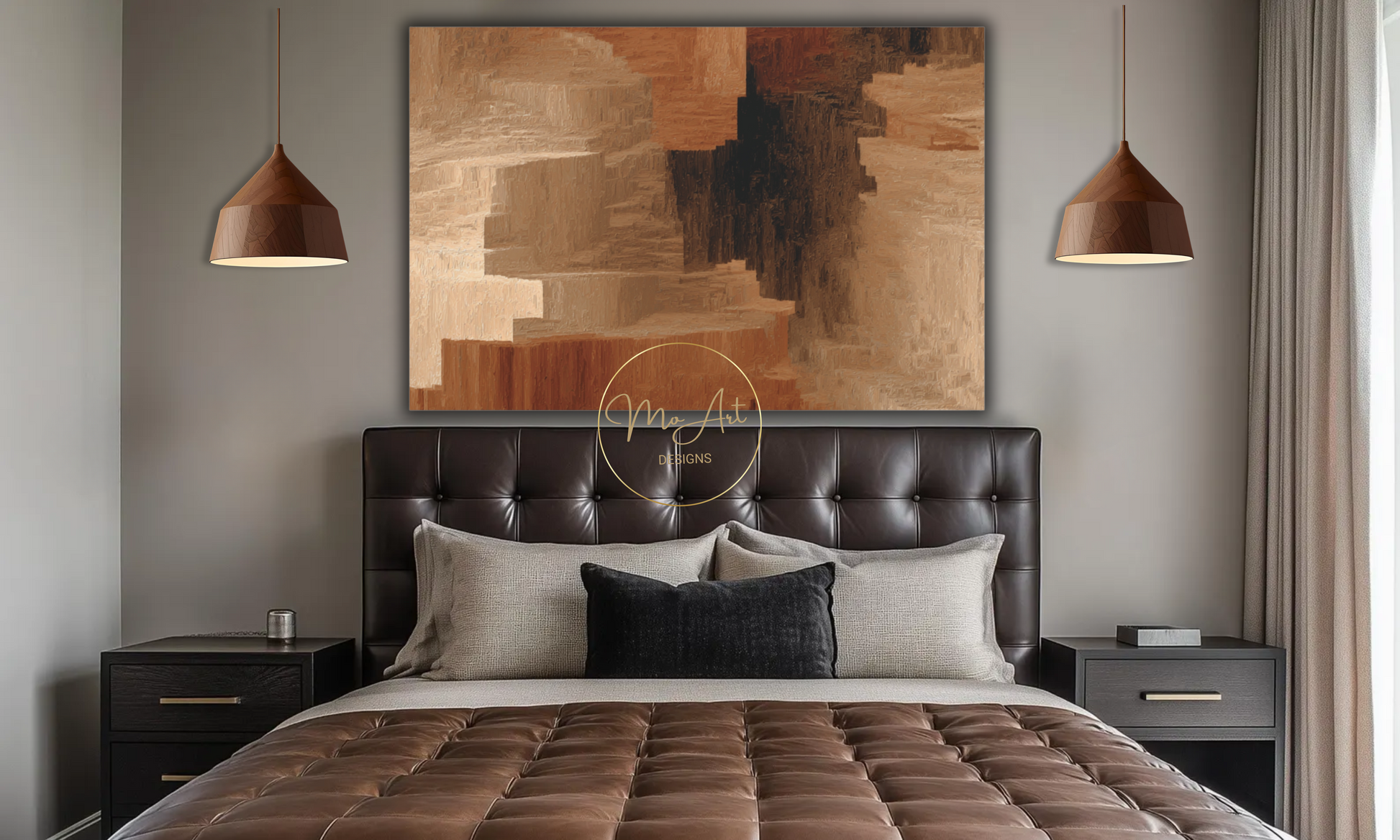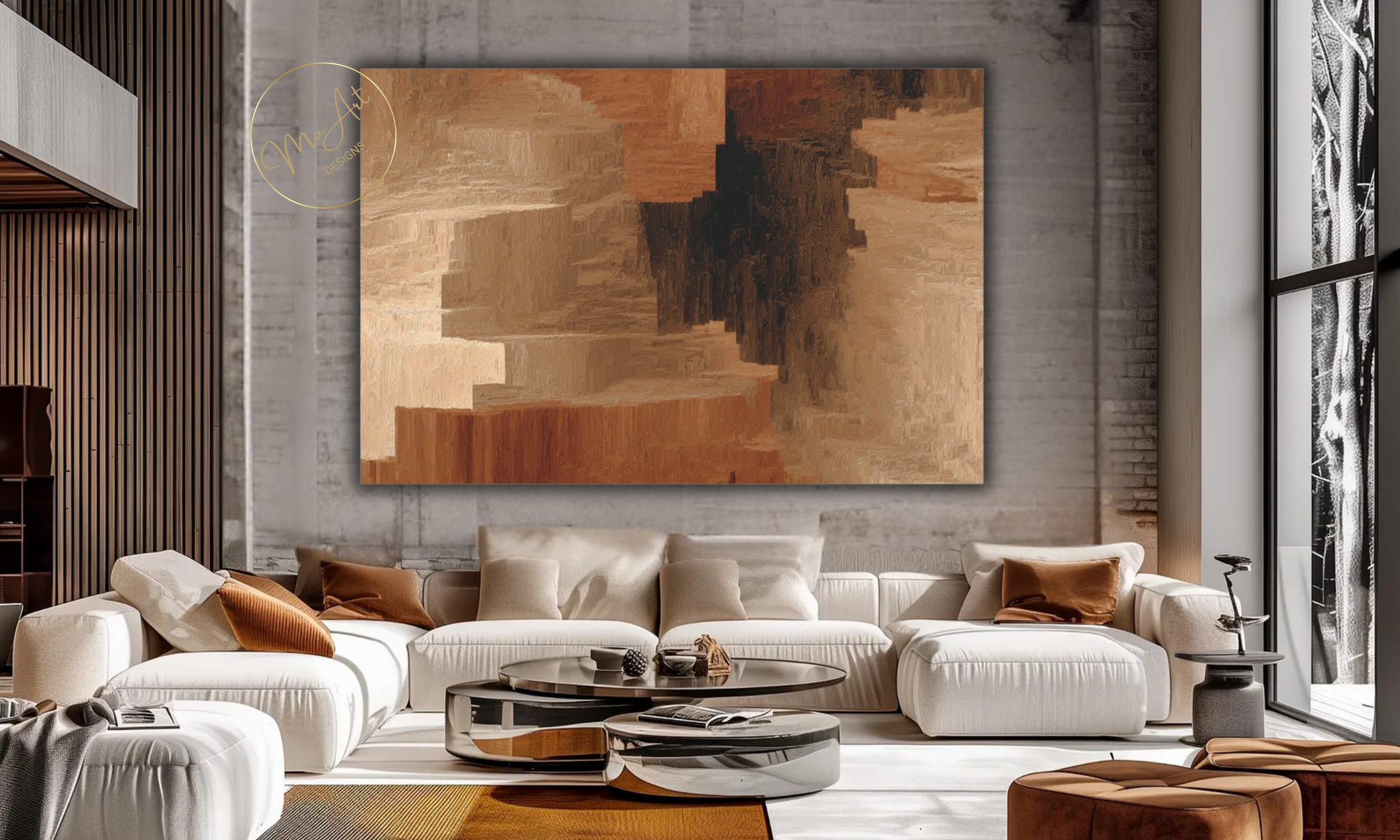 Elevate your space with this modern abstract canvas, featuring a bold interplay of warm browns, soft beiges, and deep neutrals. The geometric, layered texture creates a sense of depth and architectural dimension—perfect for adding visual interest to minimalist or contemporary interiors.