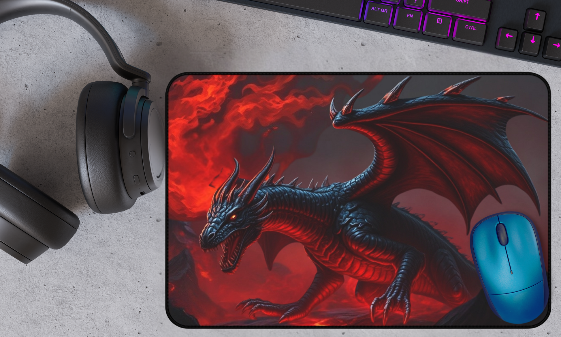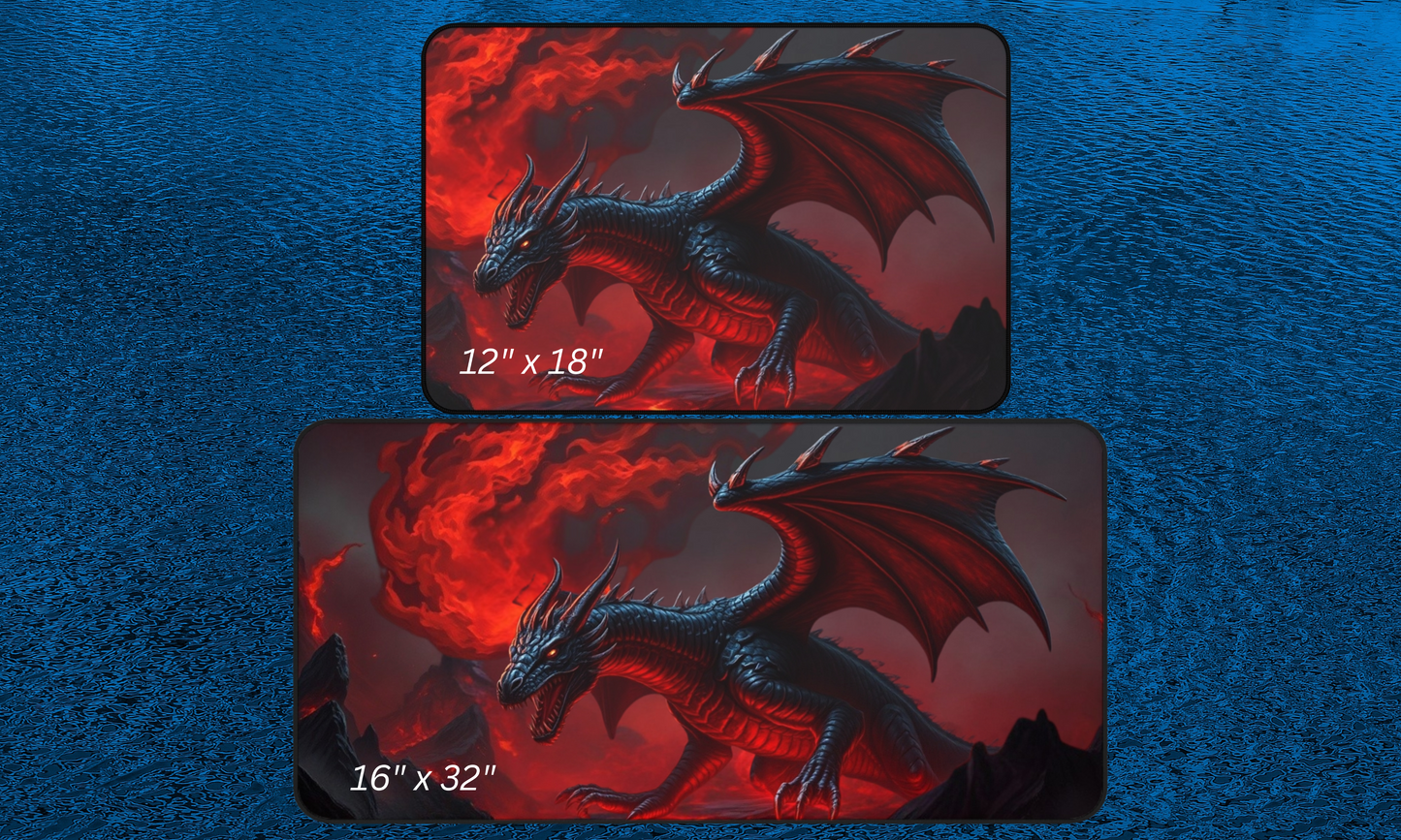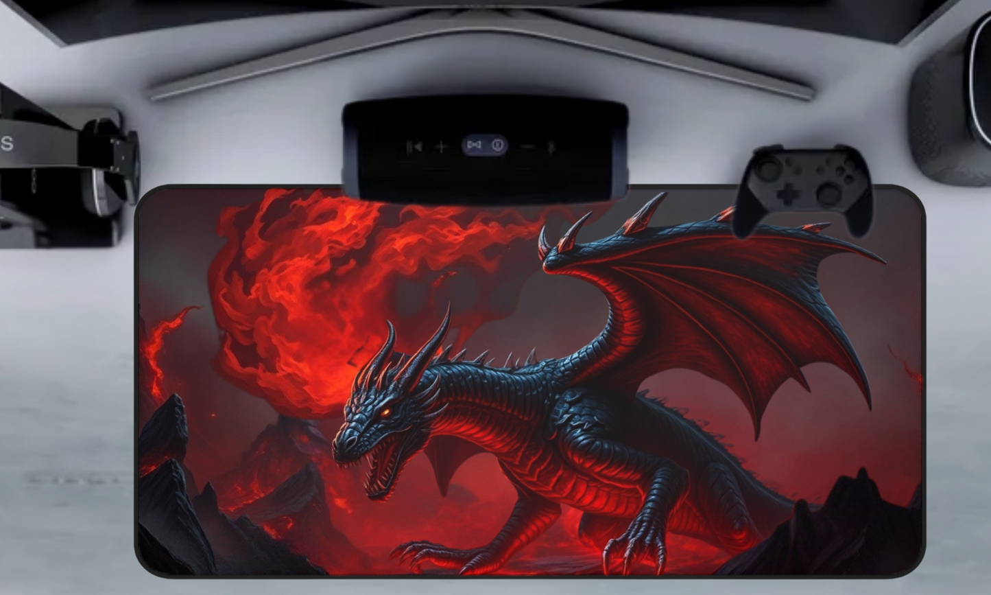 The Mystical Black Dragon Desk Mat / Mouse Pad offers a striking and immersive design featuring a majestic black dragon, perfect for gaming and work setups. Crafted with high-quality materials, it provides a smooth surface for precise mouse movements and a comfortable feel during extended use. Its large size ensures ample space for both keyboard and mouse, while the mystical dragon artwork adds a touch of fantasy and intrigue to your desk aesthetic. Ideal for gamers, fantasy enthusiasts, or anyone looking to enhance their workspace with a unique, visually captivating accessory.