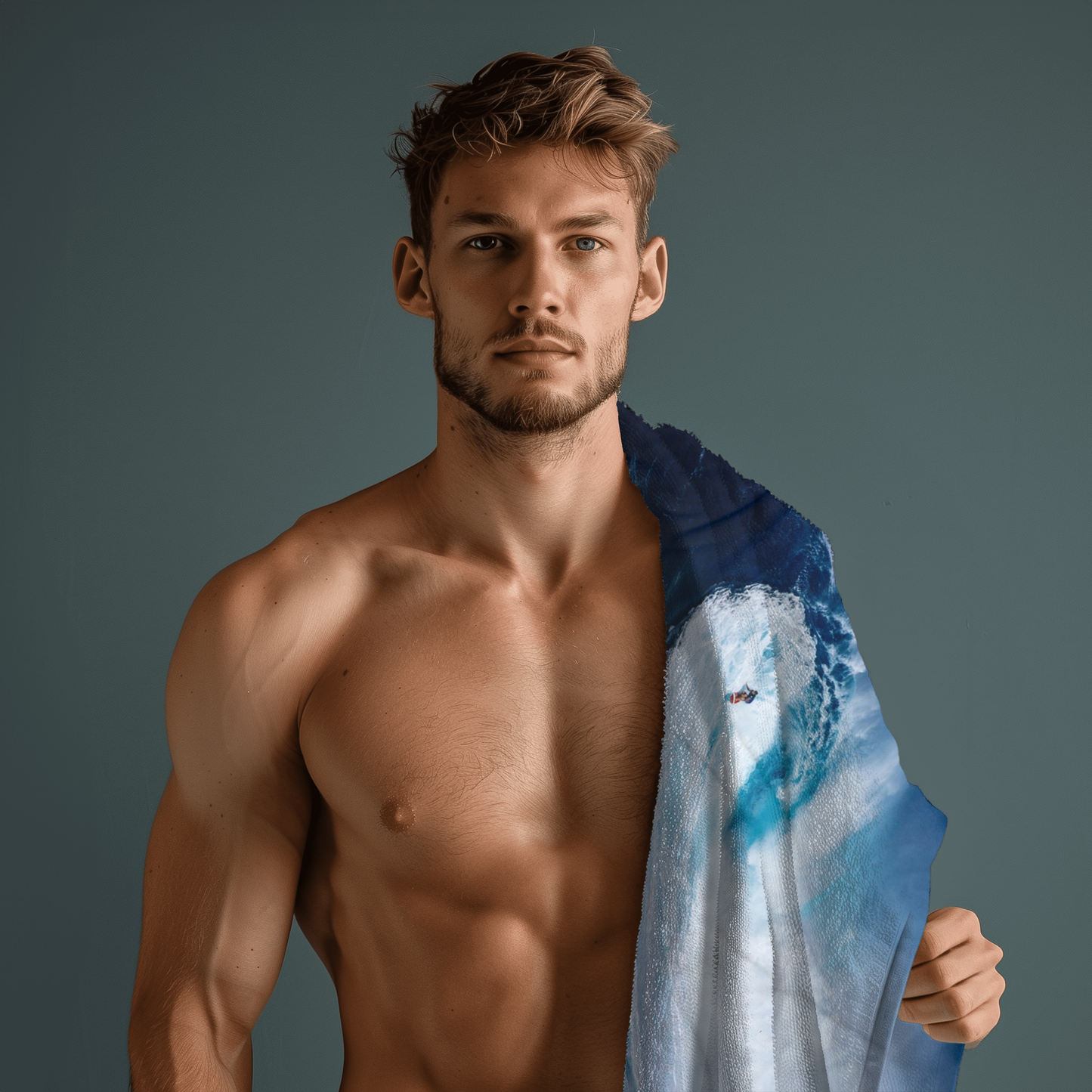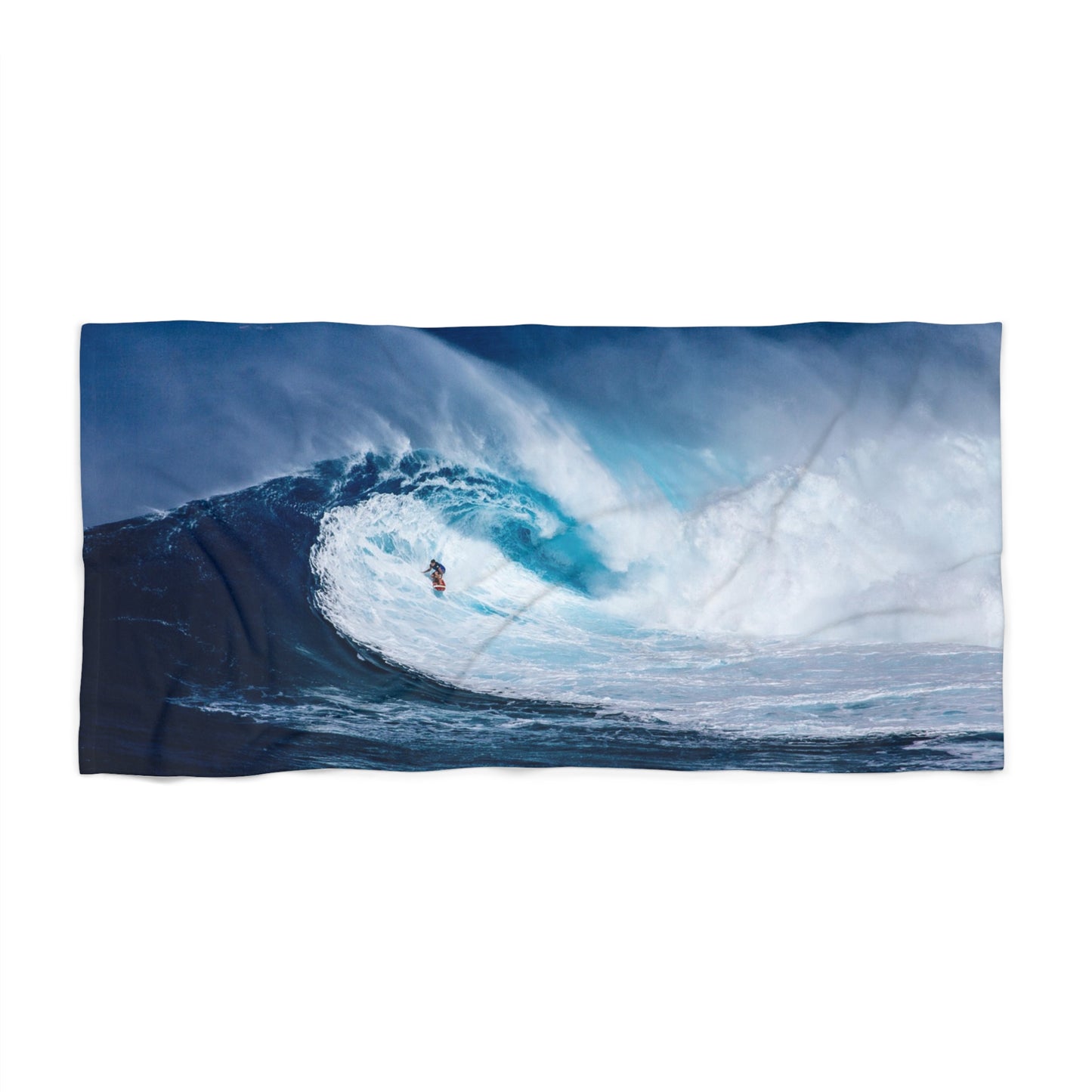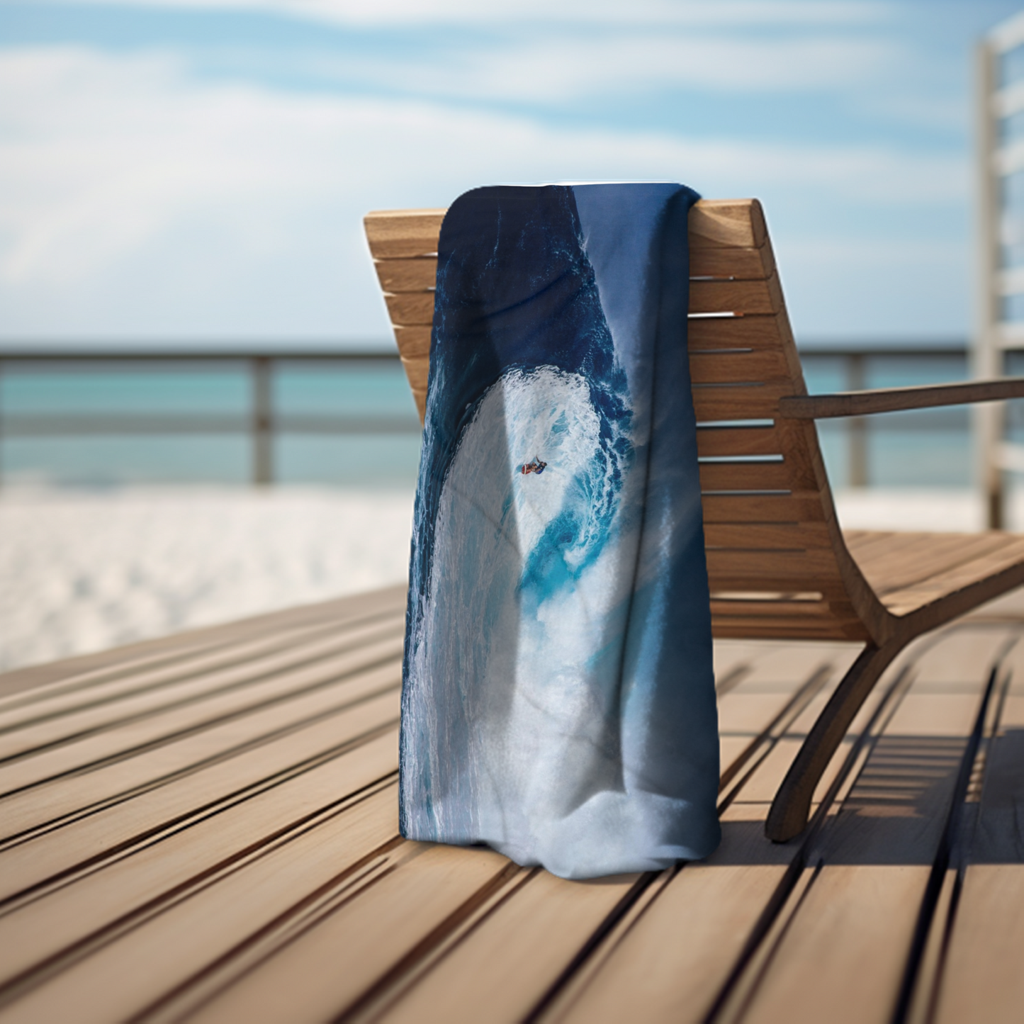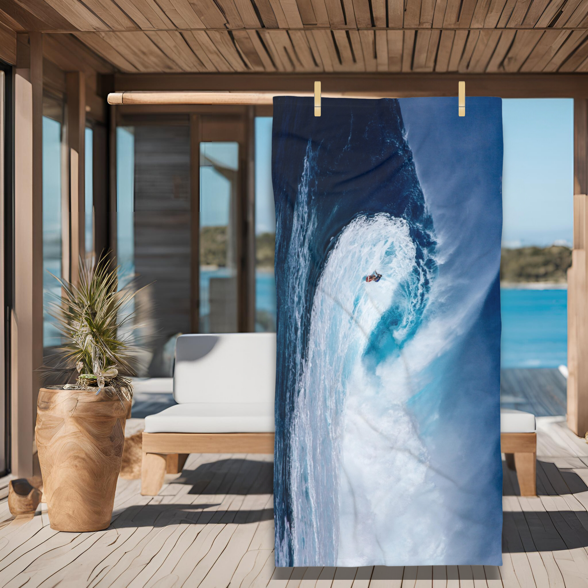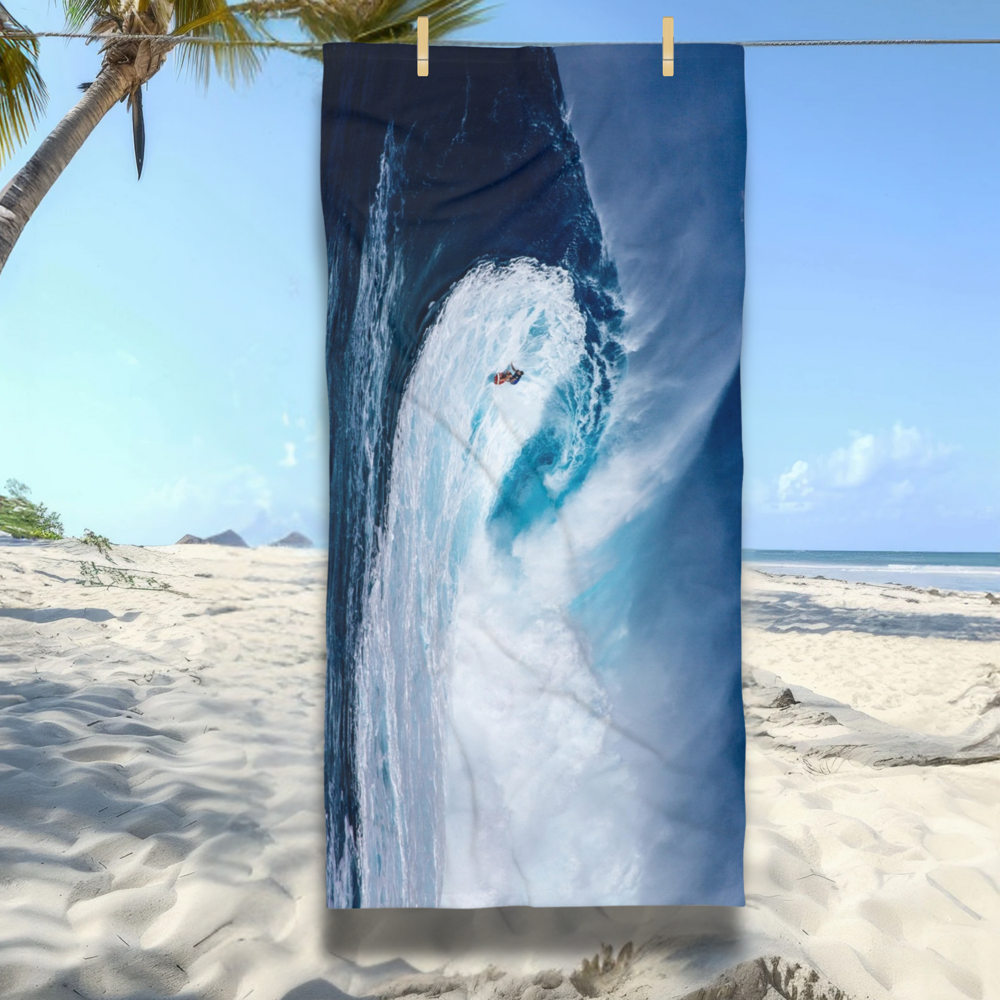 "Surfing the Big Wave Beach Towel" is a fun, eye-catching beach accessory that captures the exhilarating spirit of big wave surfing, featuring a surfer riding massive waves. Designed to be large, soft, and highly absorbent, it’s perfect for lounging on the sand, drying off after a surf, or making a bold style statement at the beach. Its dynamic imagery and energetic colors celebrate the adventurous and thrill-seeking culture of surfing, making it a favorite among surf enthusiasts and beach lovers alike.