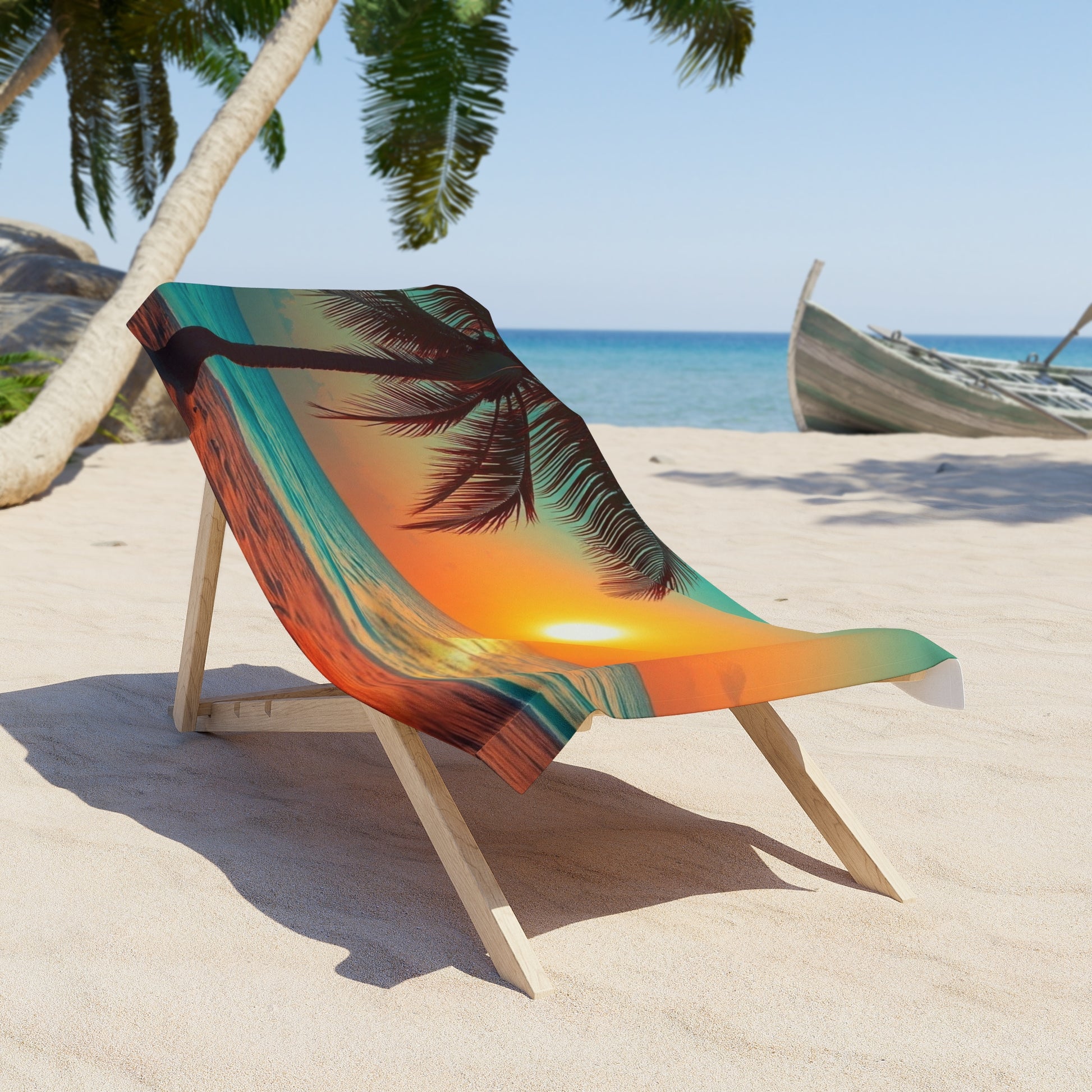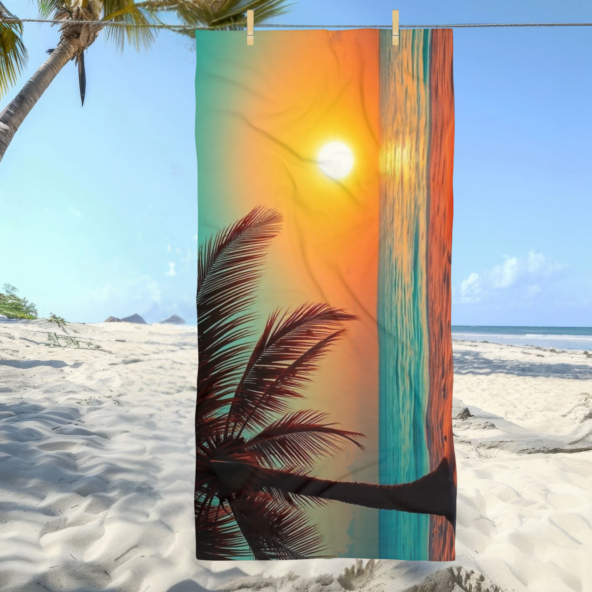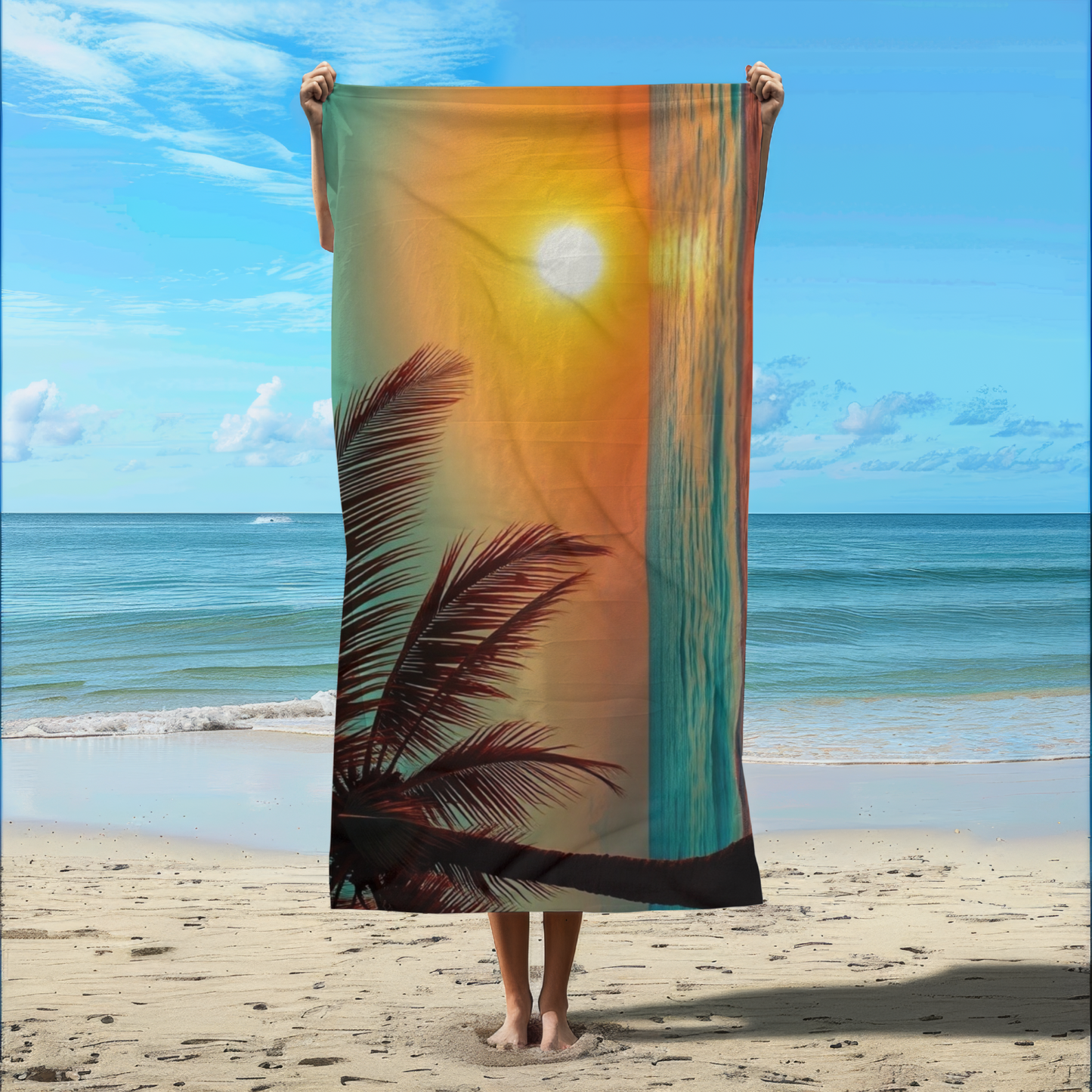 Experience the ultimate relaxation with the "Tropical Sunrise on the Beach" luxurious beach towel, crafted from ultra-soft, absorbent material that combines comfort and style. Featuring a vibrant sunrise design that captures the serene beauty of dawn by the ocean, this towel is perfect for lounging, sunbathing, or beach outings. Its generous size ensures ample coverage, while its quick-drying fabric makes it practical for daily use. Elevate your beach experience with this elegant accessory that seamlessly blends functionality and aesthetic appeal.