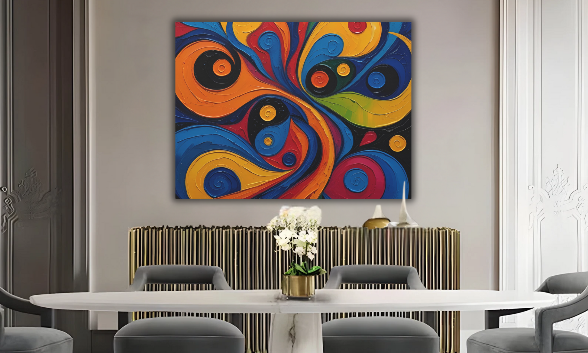 This Vibrant Abstract Canvas Wall Art adds energy and contemporary flair to any space, featuring bold brushstrokes, dynamic shapes, and a diverse palette of hues that evoke emotion and creativity. Ideal for living rooms, offices, or art galleries, this piece serves as a focal point that complements various decor styles, from minimalist to eclectic, while also providing a sophisticated touch of modern artistry.