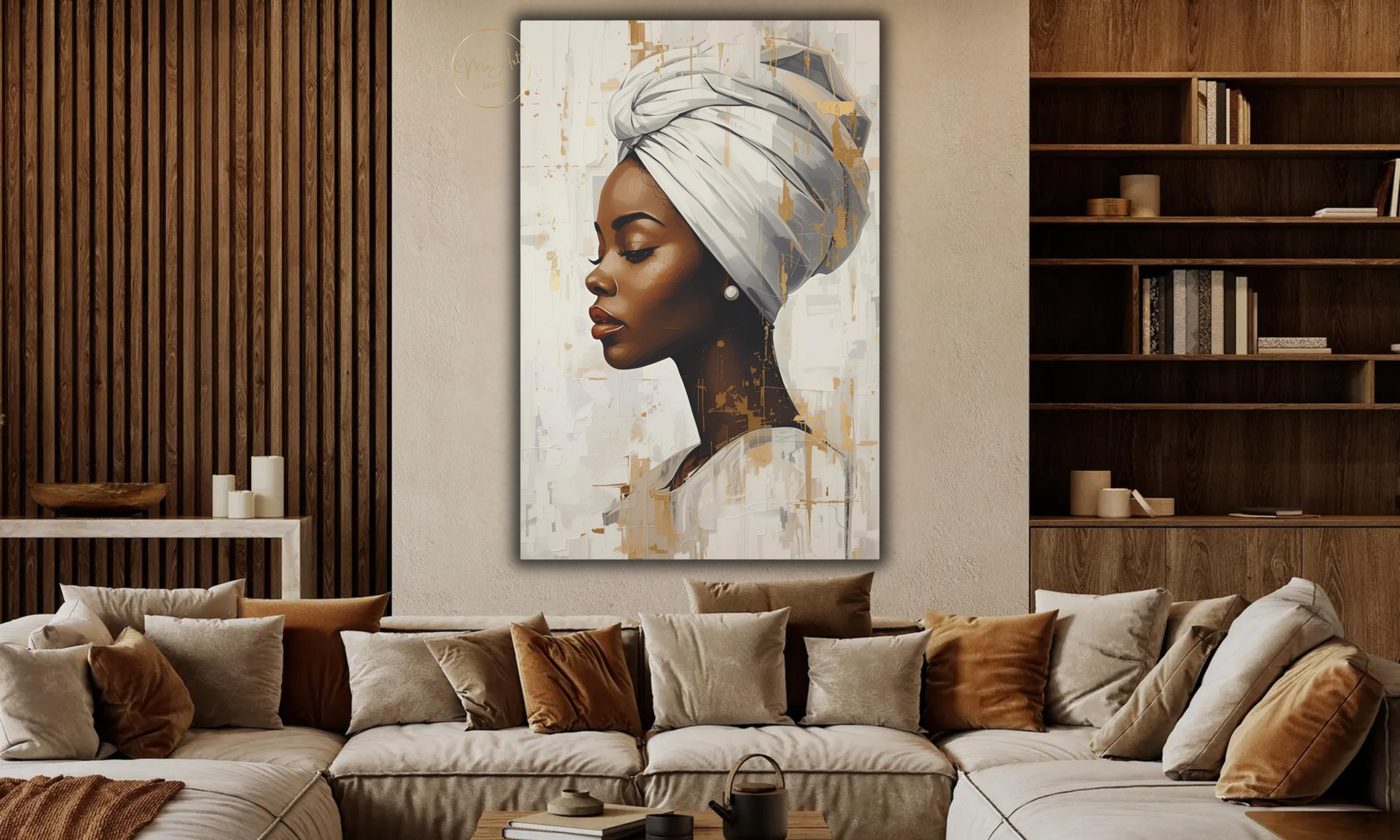 Perfect for modern, bohemian, minimalist, or luxury interiors, this artwork makes a bold yet serene statement in living rooms, bedrooms, offices, or meditation spaces. It is more than décor — it is a symbol of self-expression, femininity, and cultural pride.
